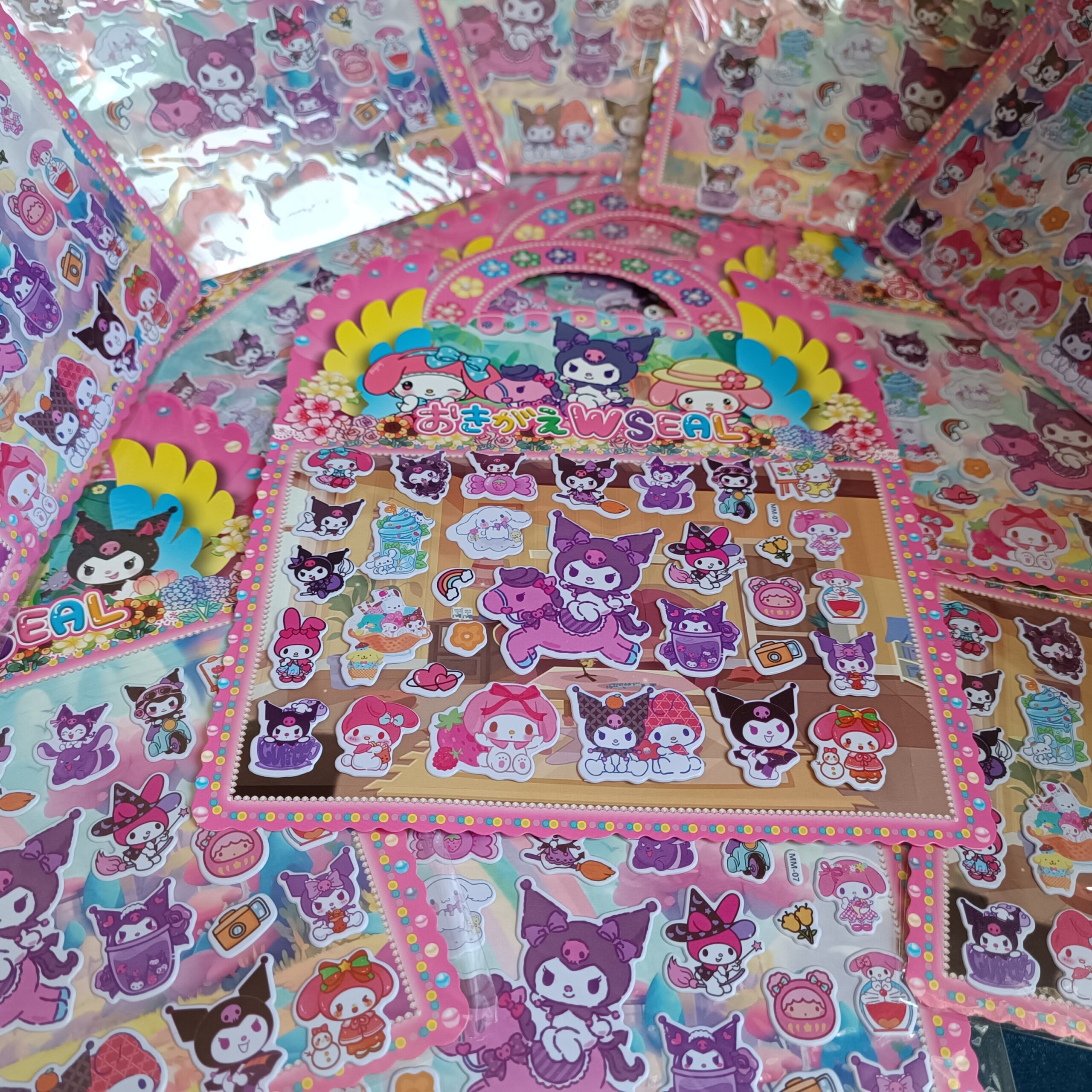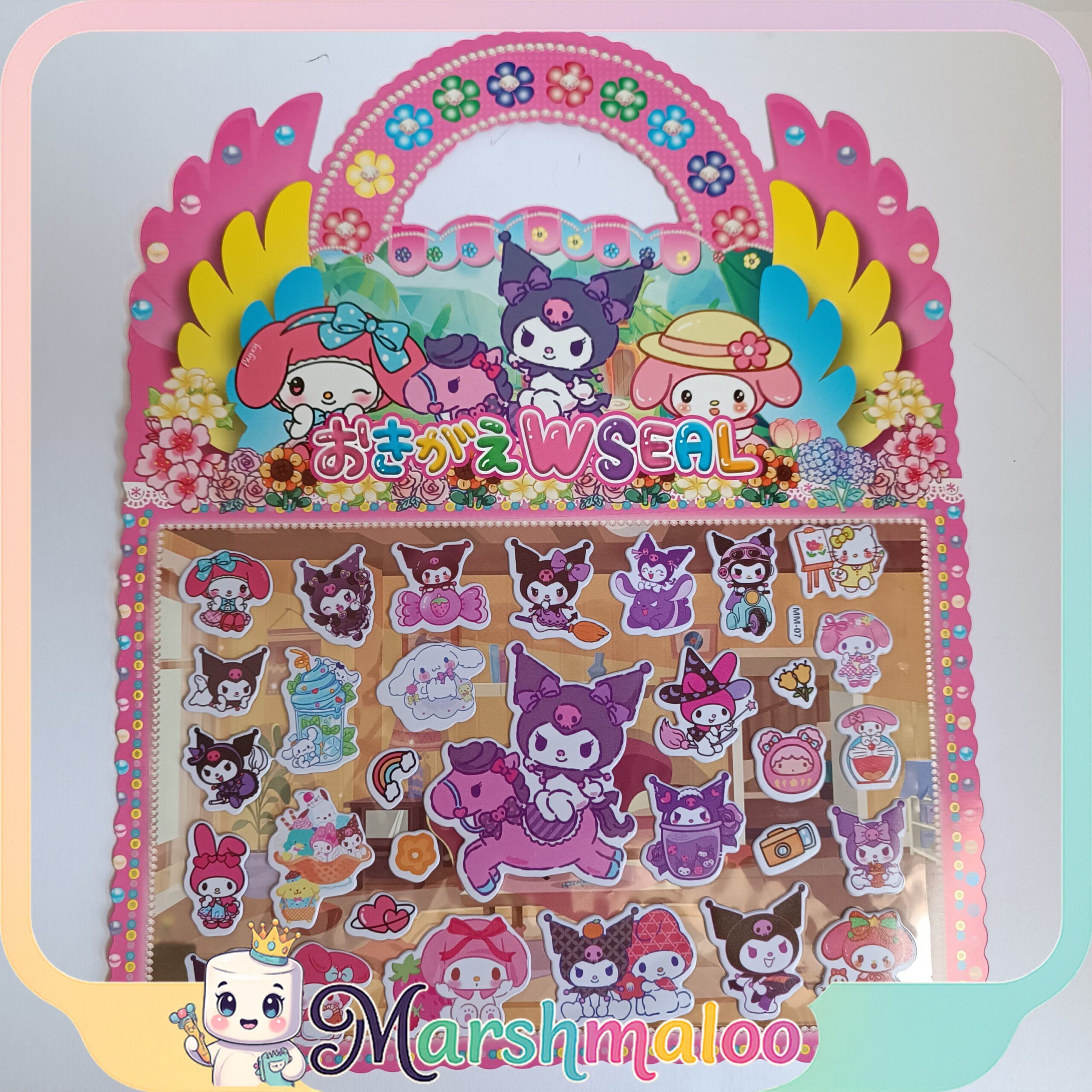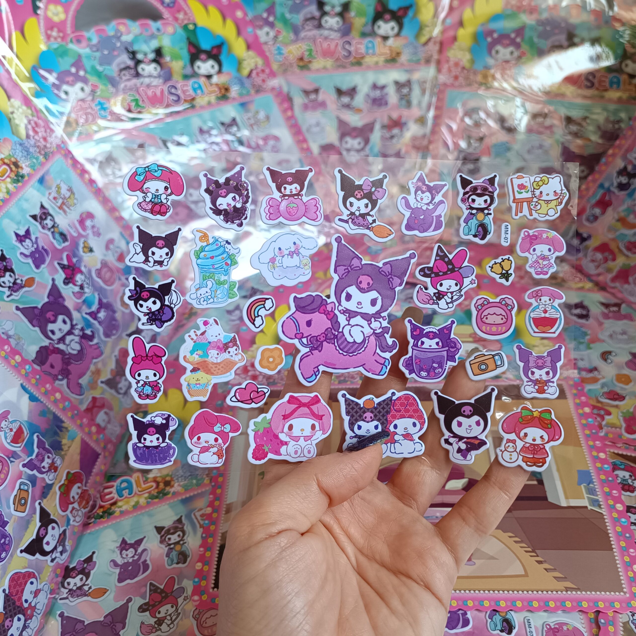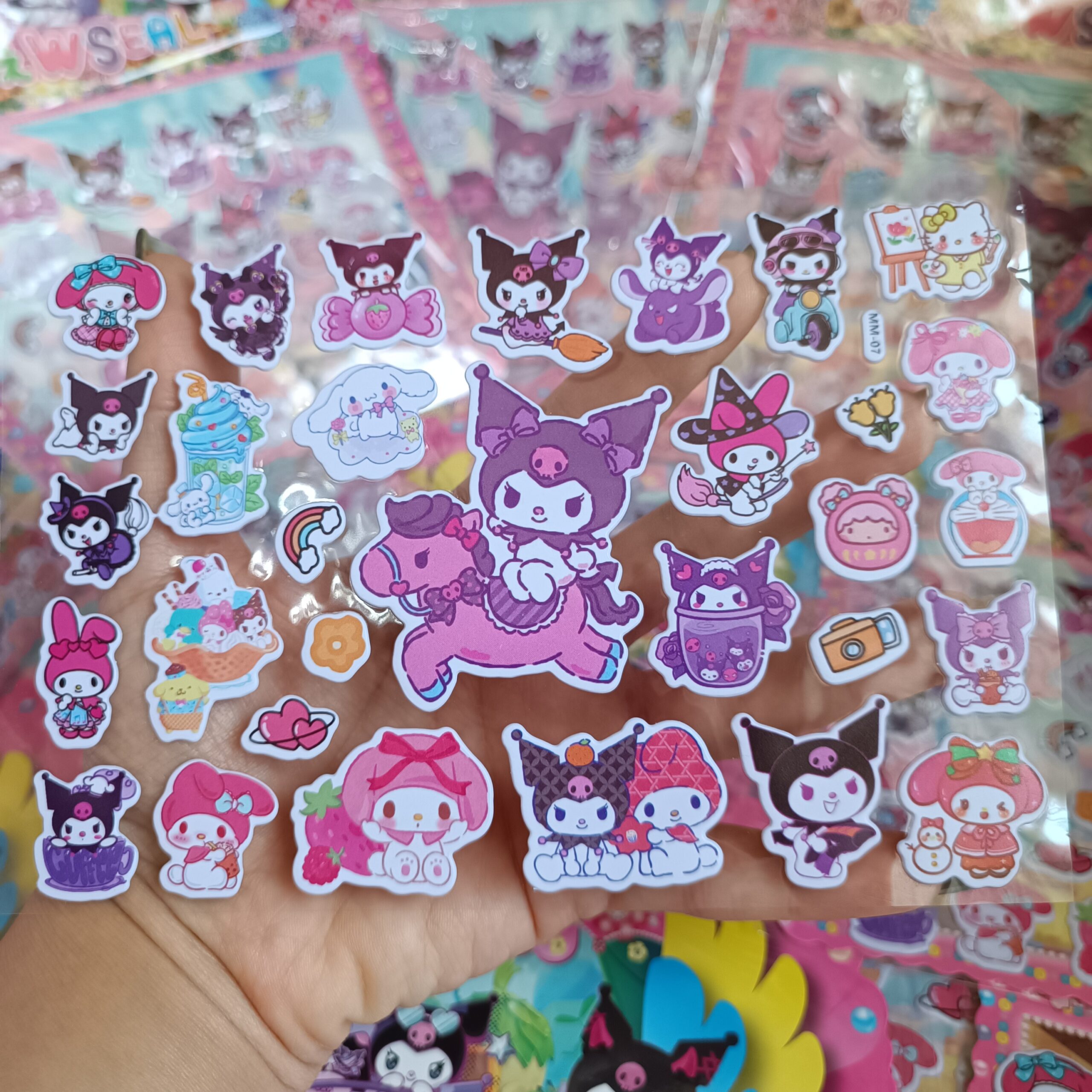 استیکر برجسته دسته دار کرومی و ملودی، محصولی جذاب و خلاقانه برای علاقهمندان به دنیای رنگارنگ شخصیتهای سنریو است. این مجموعه در ابعاد ۲۰×۲۴ سانتیمتر طراحی شده و شامل استیکرهای پلاستیکی پفکی با کیفیت بالا و برشهای تمیز است که لمس آنها حس نرم و برجستهای دارد.