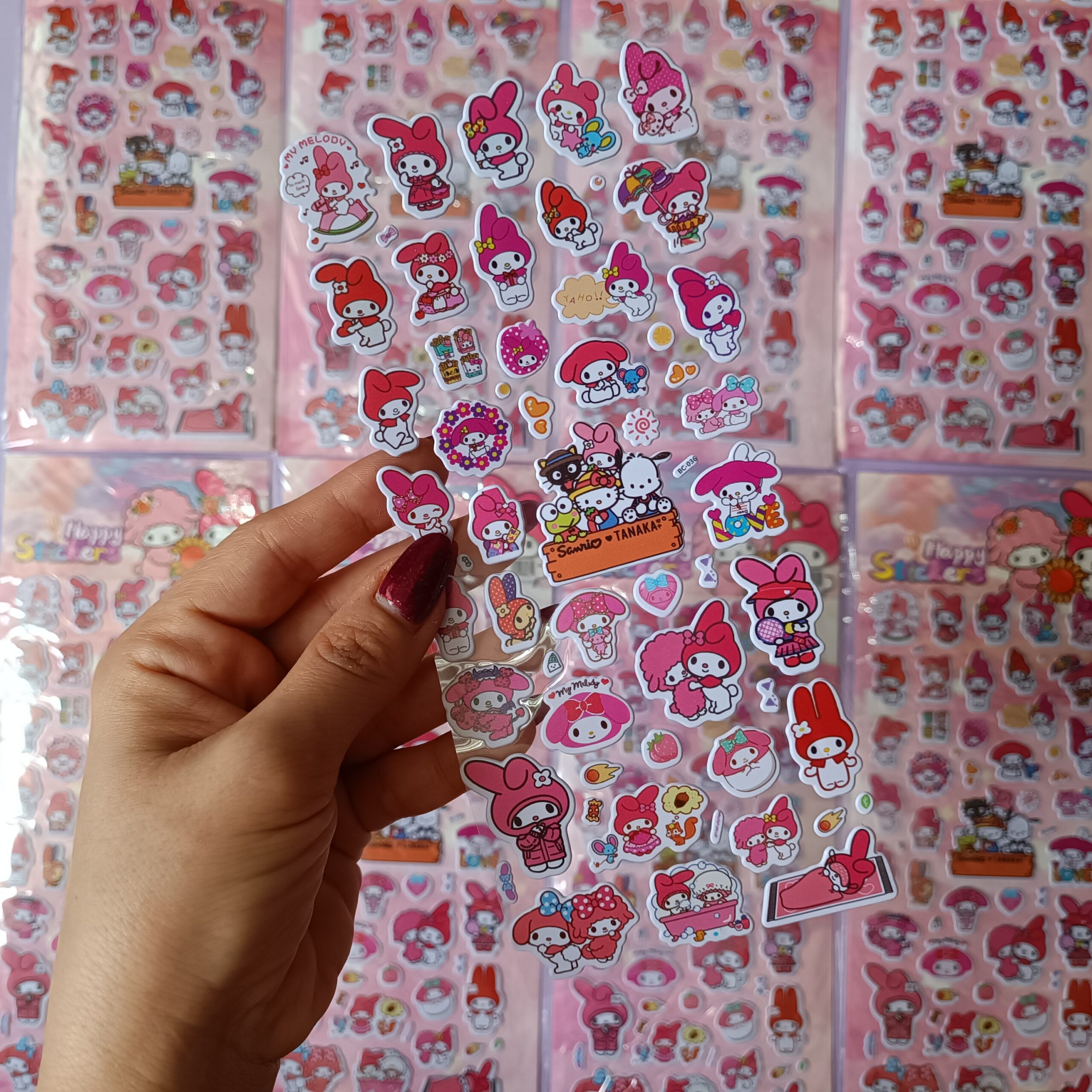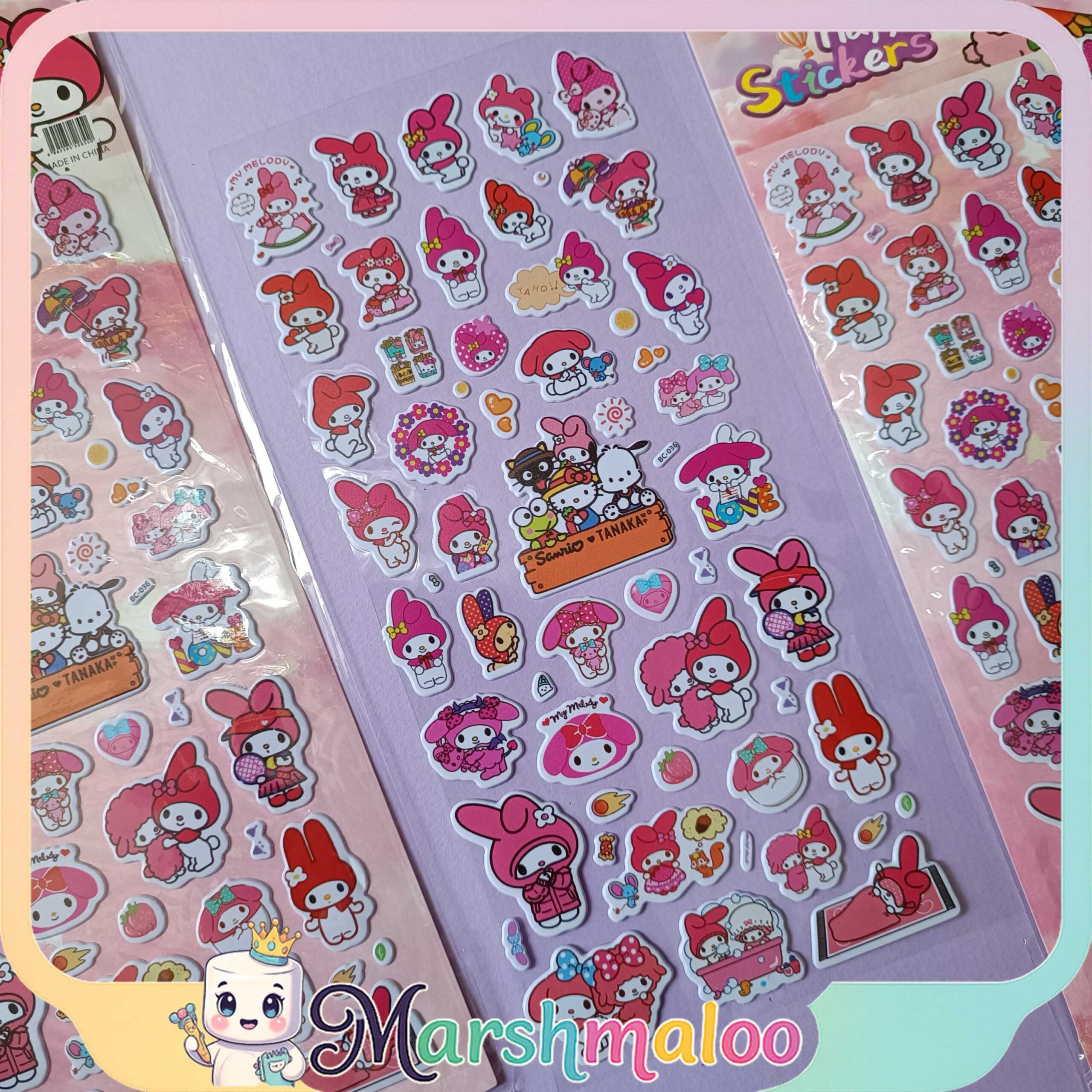 یک شیت استیکر برجسته ملودی و ببعی بازیگوش با طرحهای دلنشین جذاب. مناسب تزئین دفتر، گوشی، لپتاپ و هدیههای فانتزی.