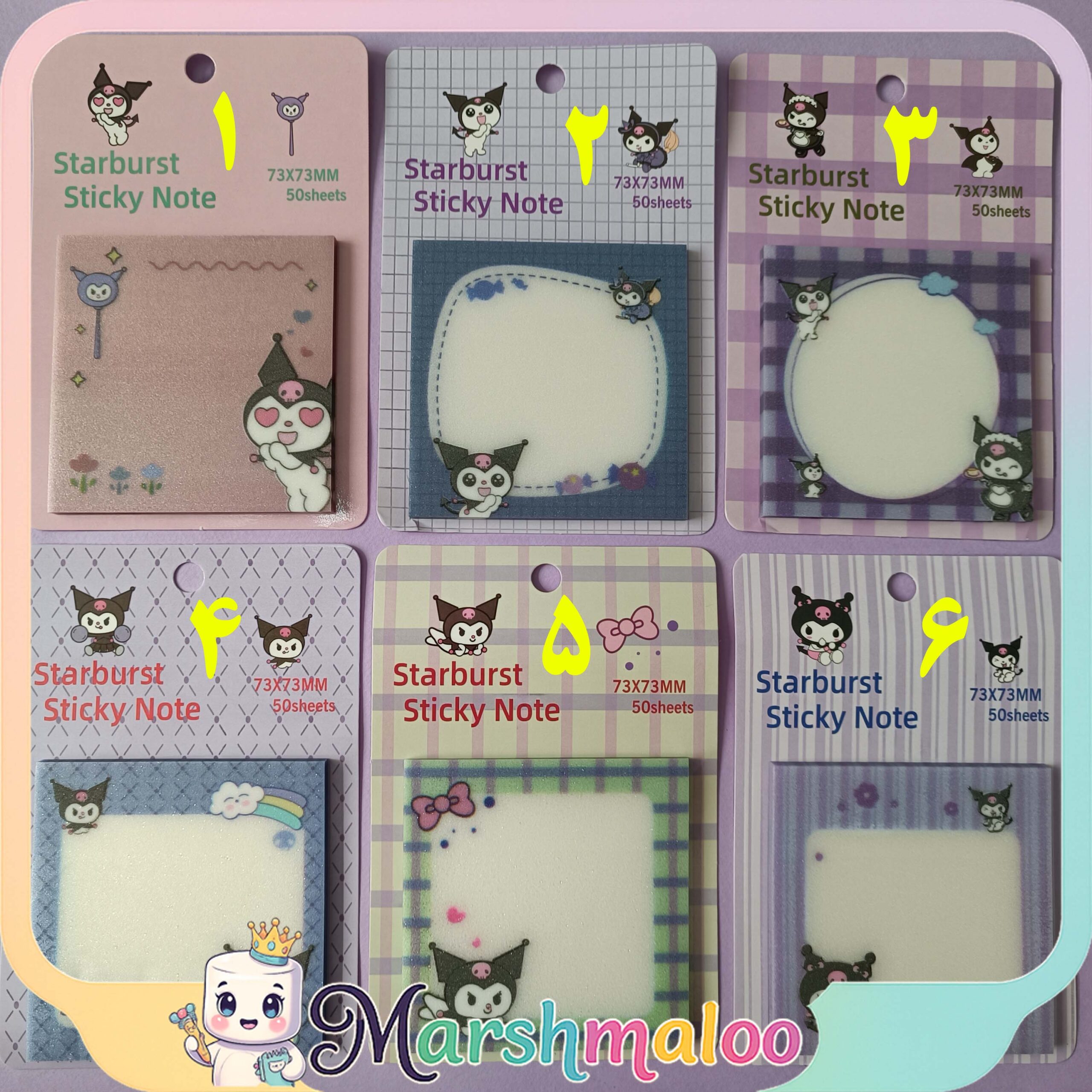 کیفیت بالای چسب این محصول، دوام و چسبندگی مناسبی را تضمین میکند بدوناینکه رد ناخواسته باقی بگذارد. رنگبندی متنوع شامل صورتی، بنفش، آبی و سبز، و طراحیهای مختلف، قدرت انتخاب فراوانی به شما میدهد. این استیکی نوت جذاب نهتنها برای کاربرد روزمره مناسب است، بلکه یک هدیه کوچک و خاص برای طرفداران Kuromi محسوب میشود.
