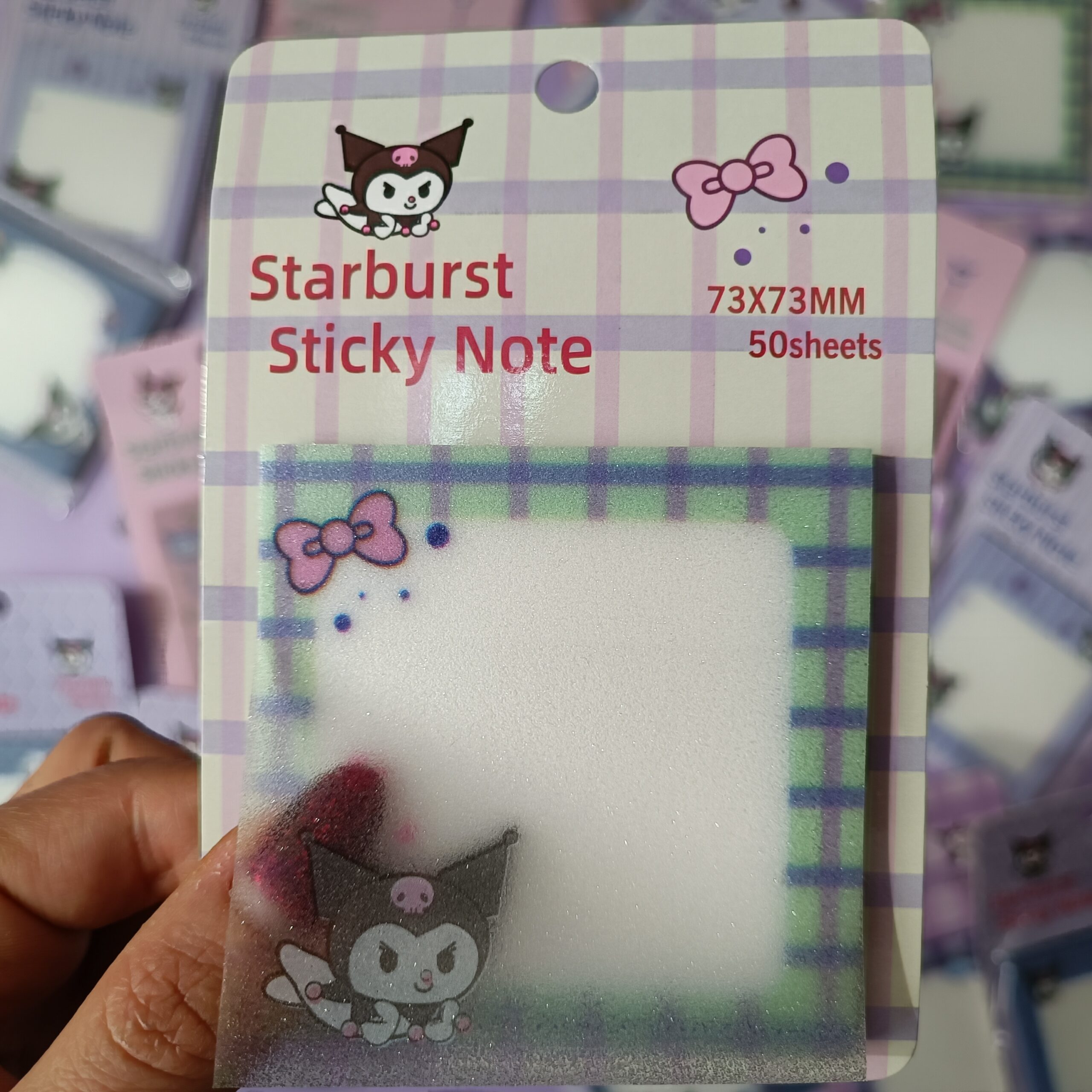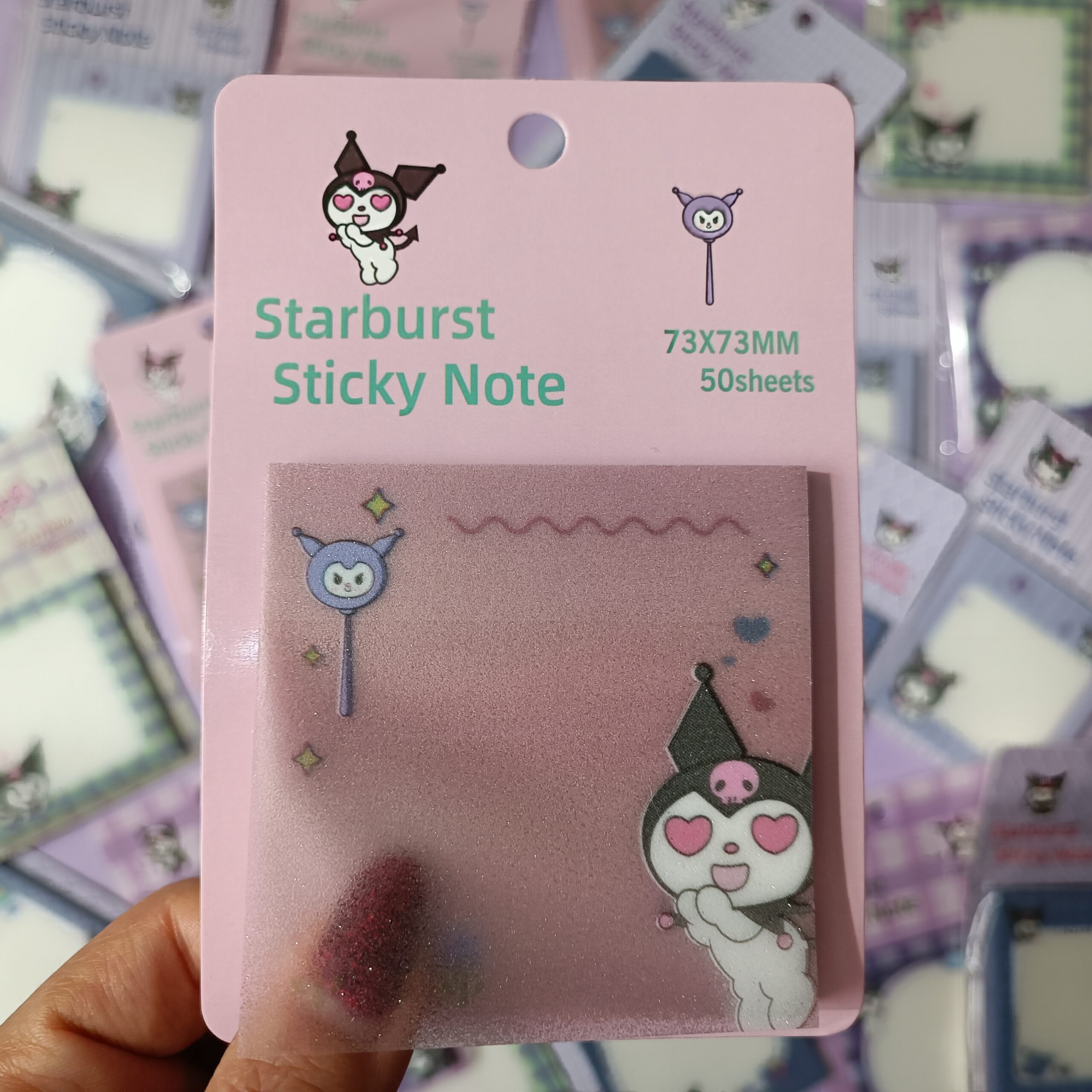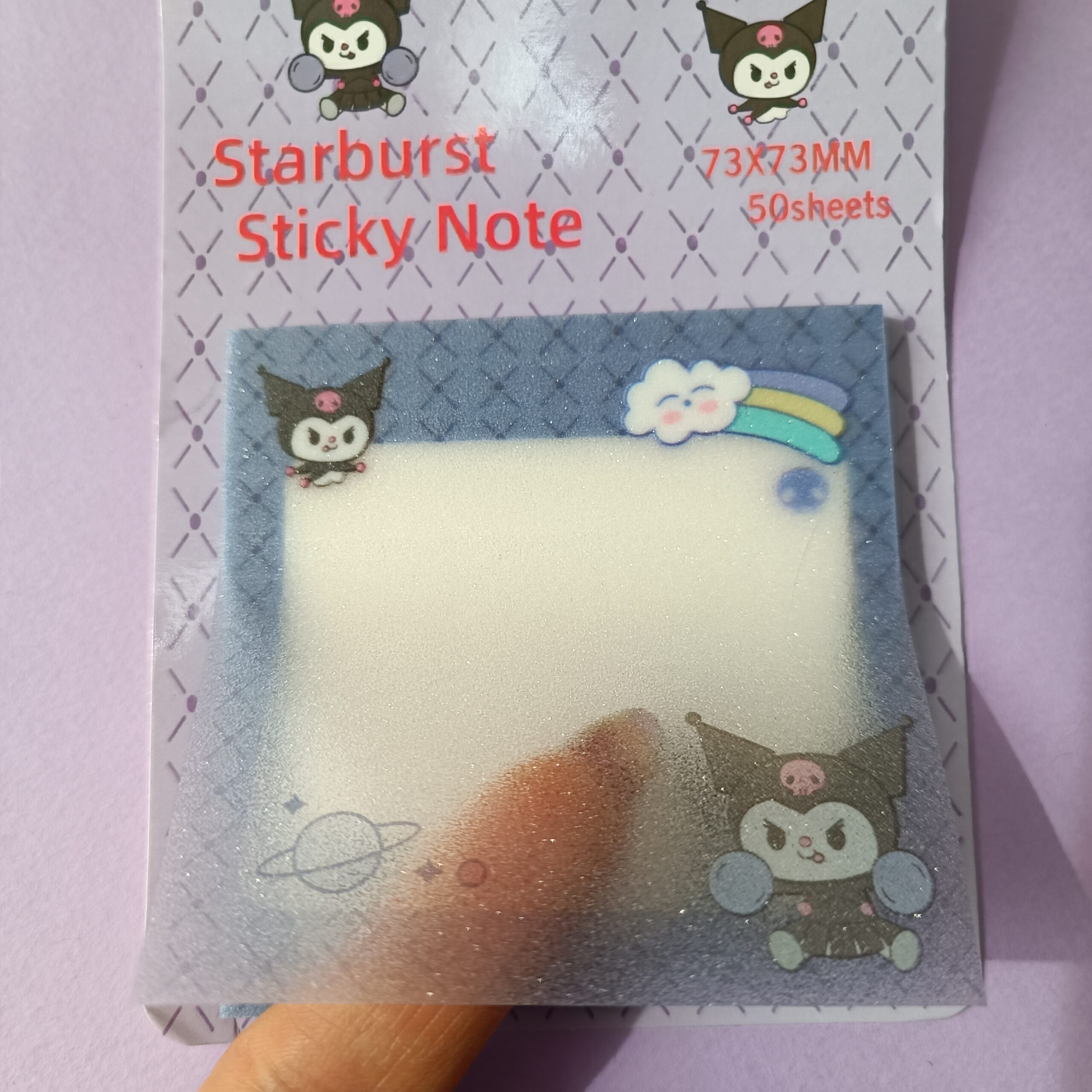 استیک نوت شفاف شاین دار کرومی، ترکیبی بینظیر از زیبایی و کارایی برای علاقمندان به لوازم تحریر فانتزی است. این یادداشتهای کوچک و کاربردی، با طراحیهای منحصربهفرد از شخصیت محبوب Kuromi و المانهای رنگارنگی مانند ابر، ستاره، رنگینکمان و تم فضایی، حالوهوایی شاد و خلاقانه به میز تحریر یا دفتر برنامهریزی شما میبخشند.