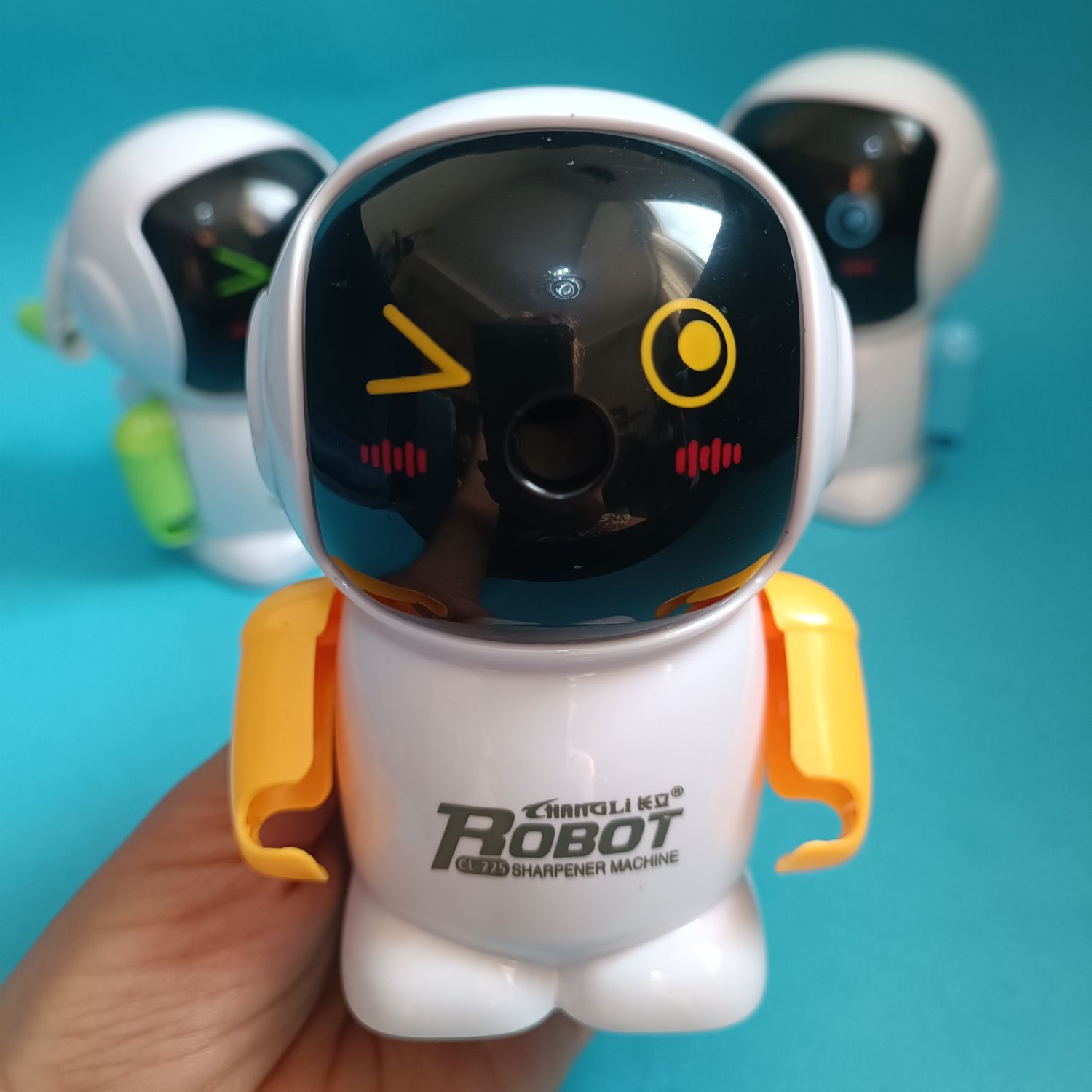 تراش رومیزی ربات بامزه برند چانگلی ارزان و باکیفیت. همزمان با تراشیدن دستهای ربات حرکت می کند.