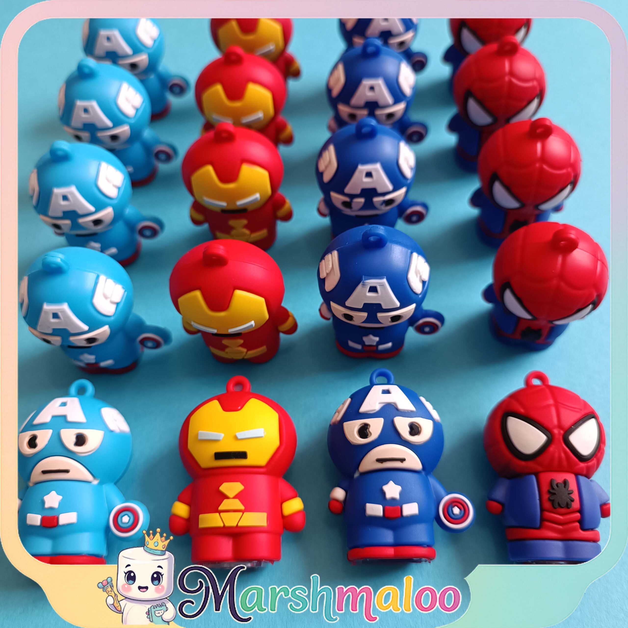 تراش سیلیکونی اونجرز ابر قهرمان شامل کاپیتان آمریکا، مرد آهنی و مرد عنکبوتی. کیفیت بالا، طراحی بامزه و خاص، مناسب برای هدیه و استفاده روزانه، با قیمتی فوقالعاده ارزان.