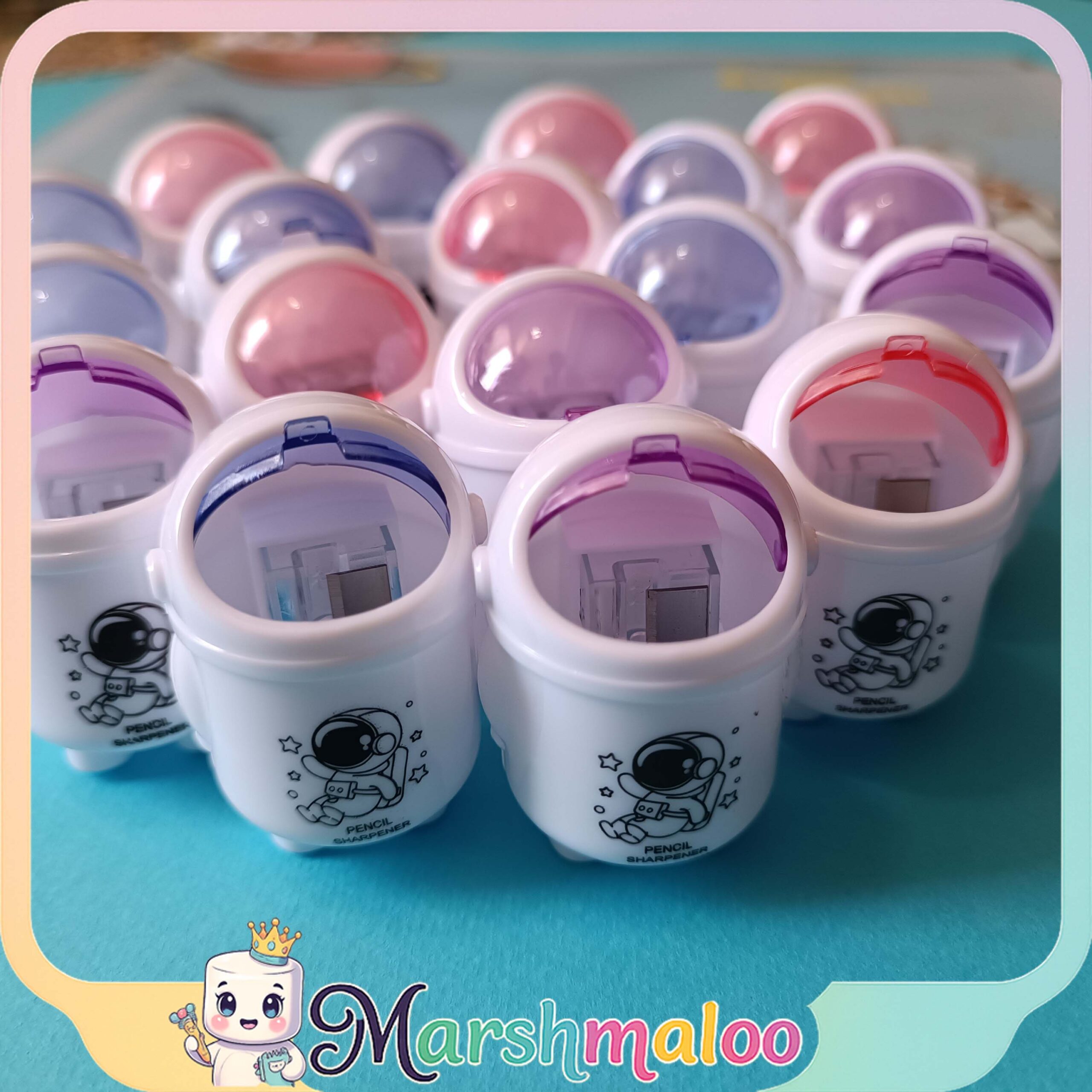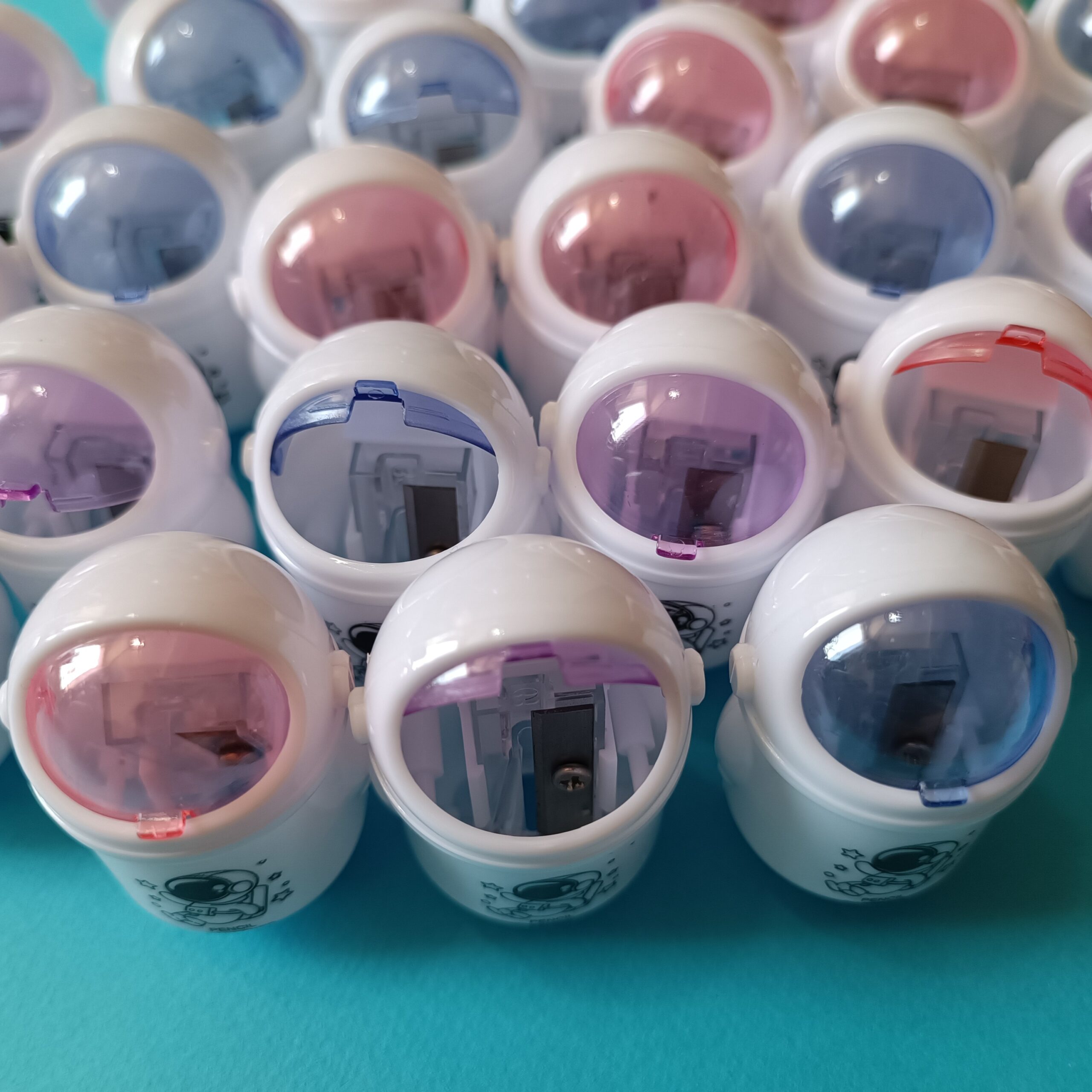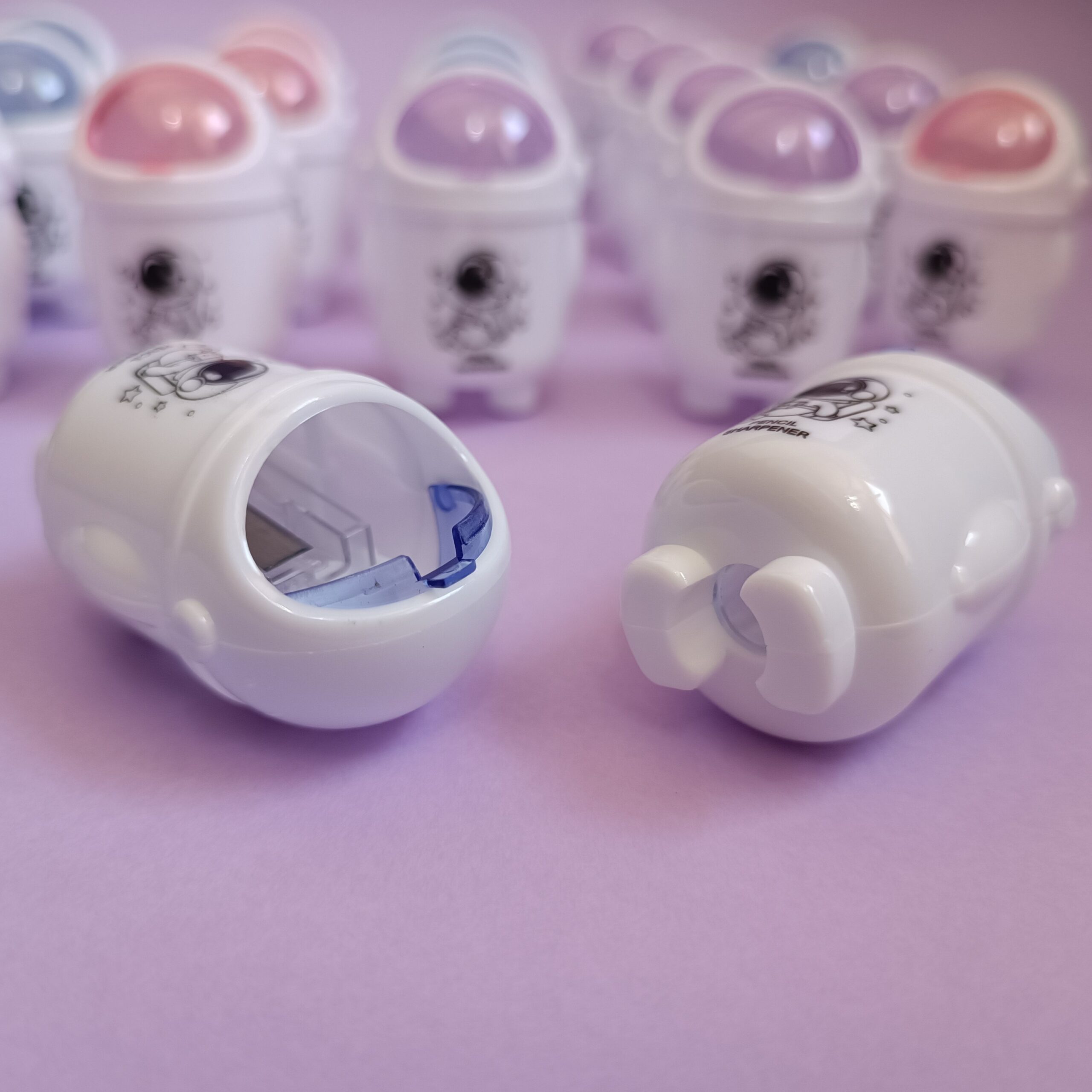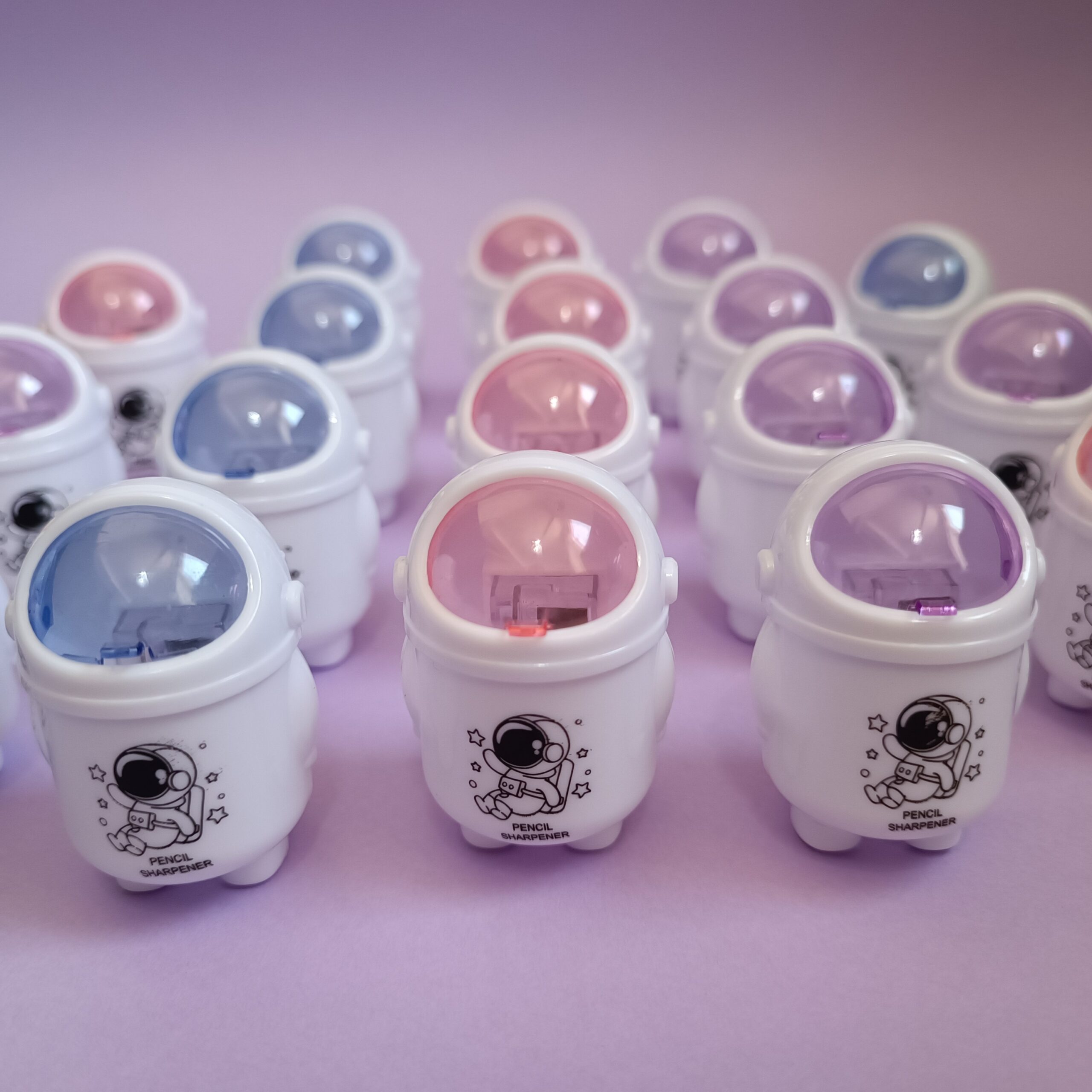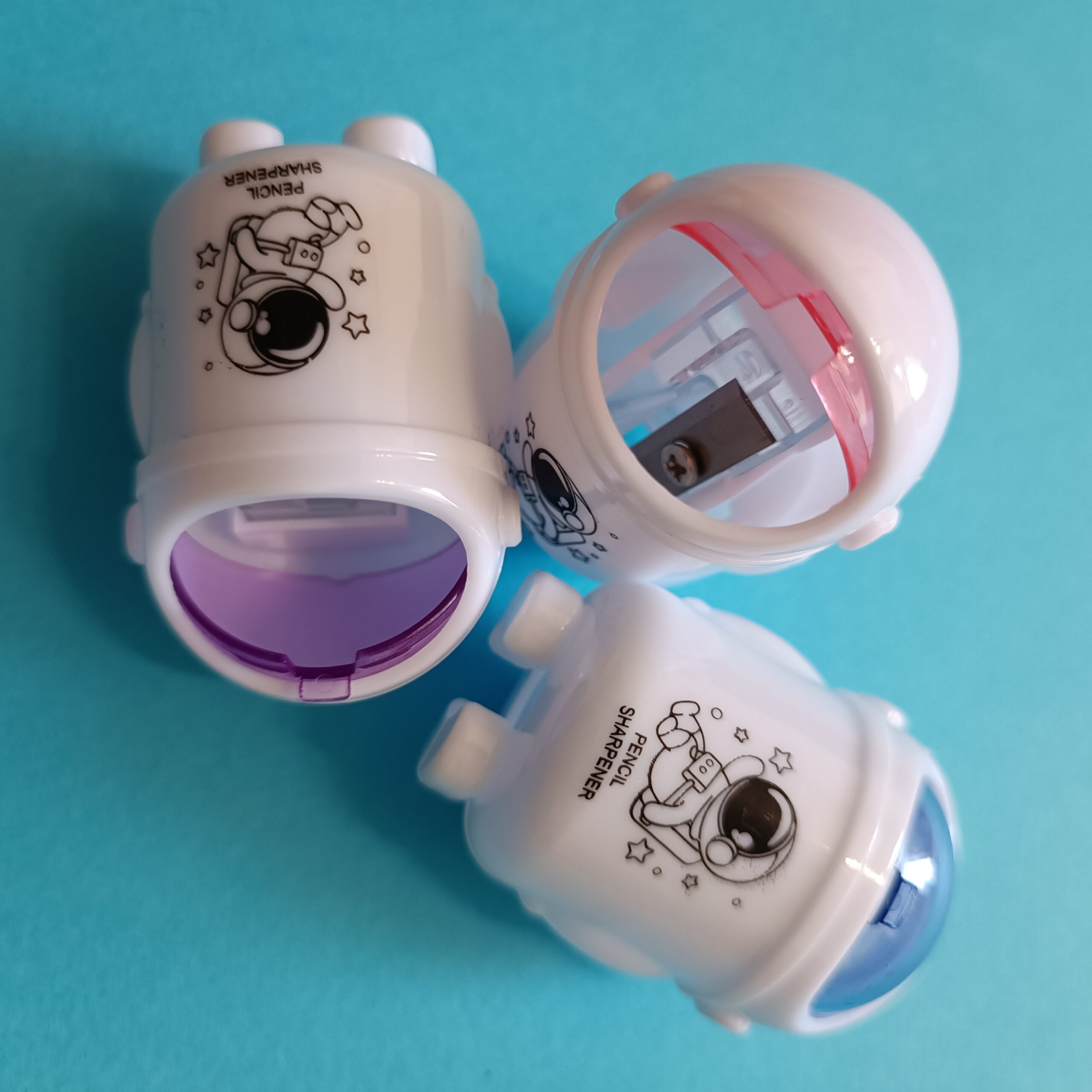 تراش مخزن دار فضانورد با طراحی بامزه، درب کلاهک رنگی و مخزن تمیزکاری آسان؛ مناسب برای لوازمالتحریر فانتزی و میز تحریر خاص شما.