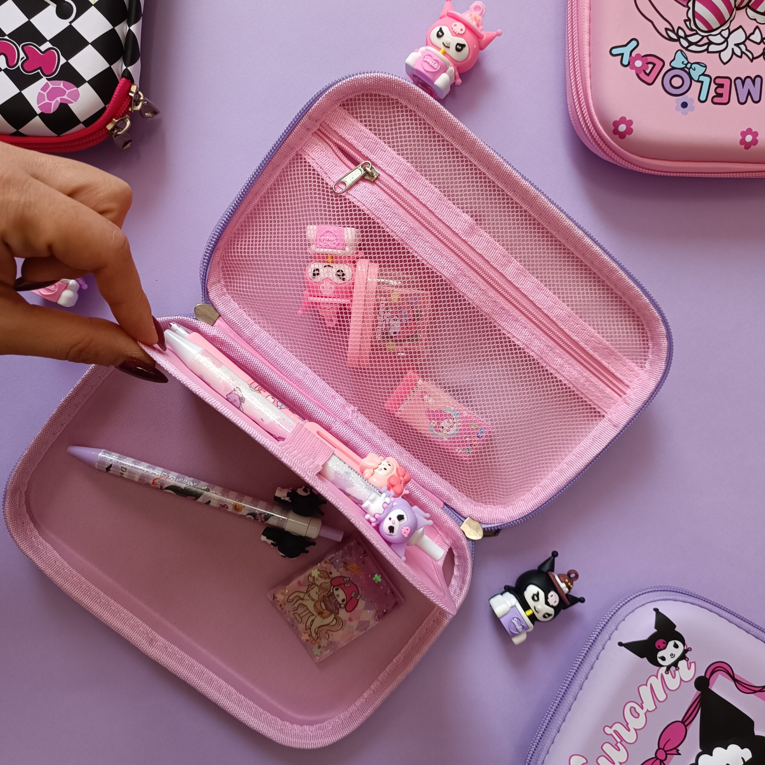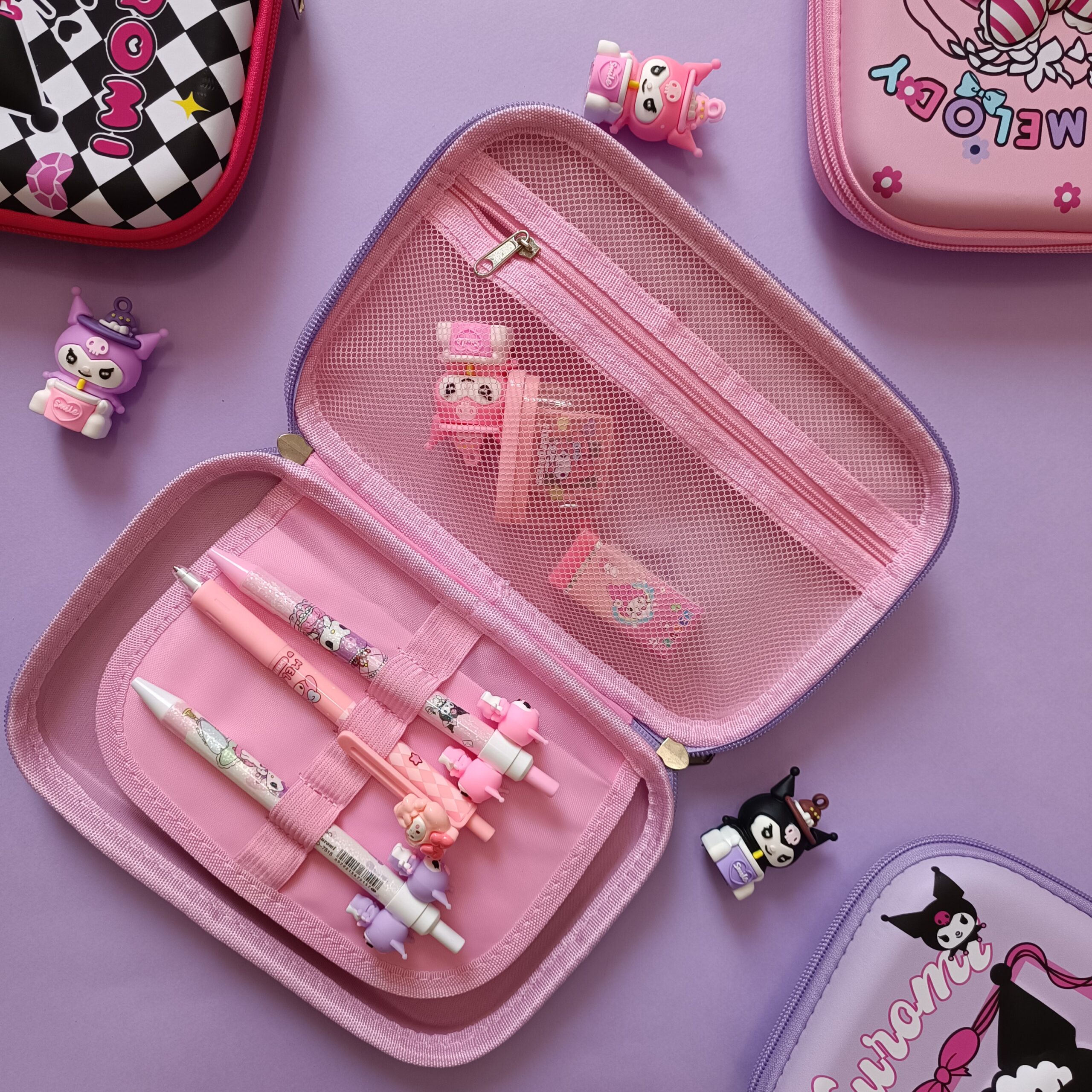 - طرحها: ارائه در مدلهای فانتزی و رنگهای شاد بنفش، صورتی و مشکی با شخصیتهای محبوب سانریو