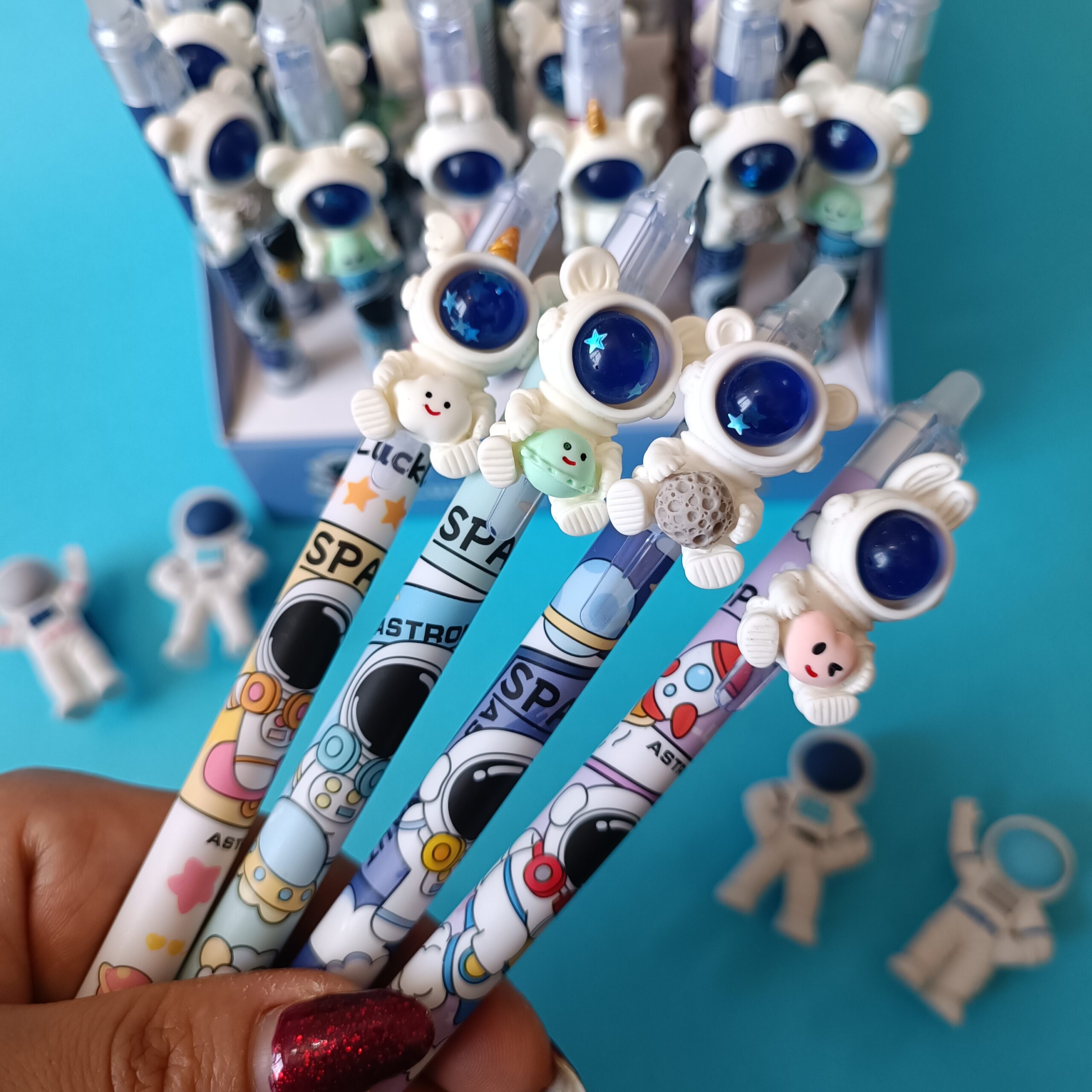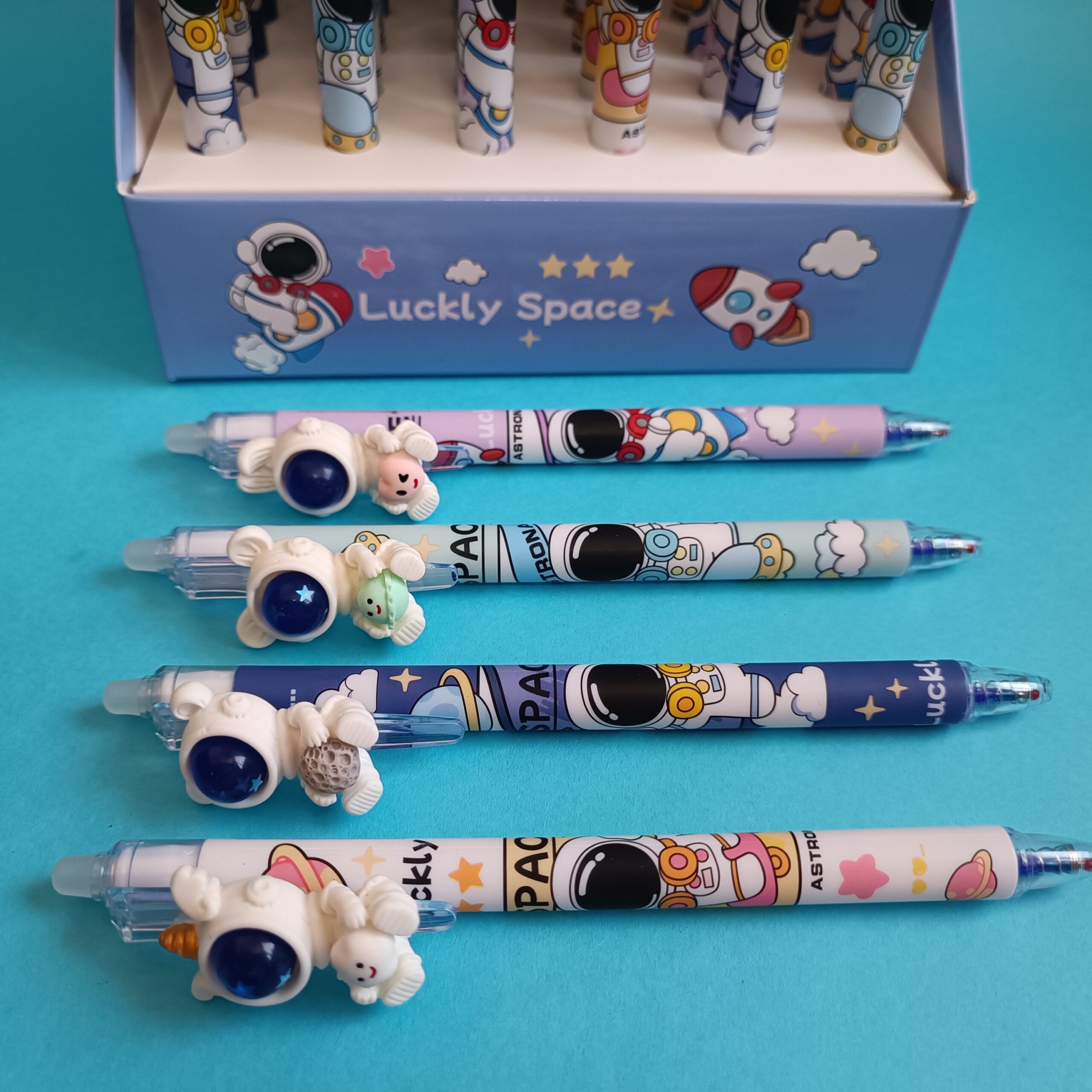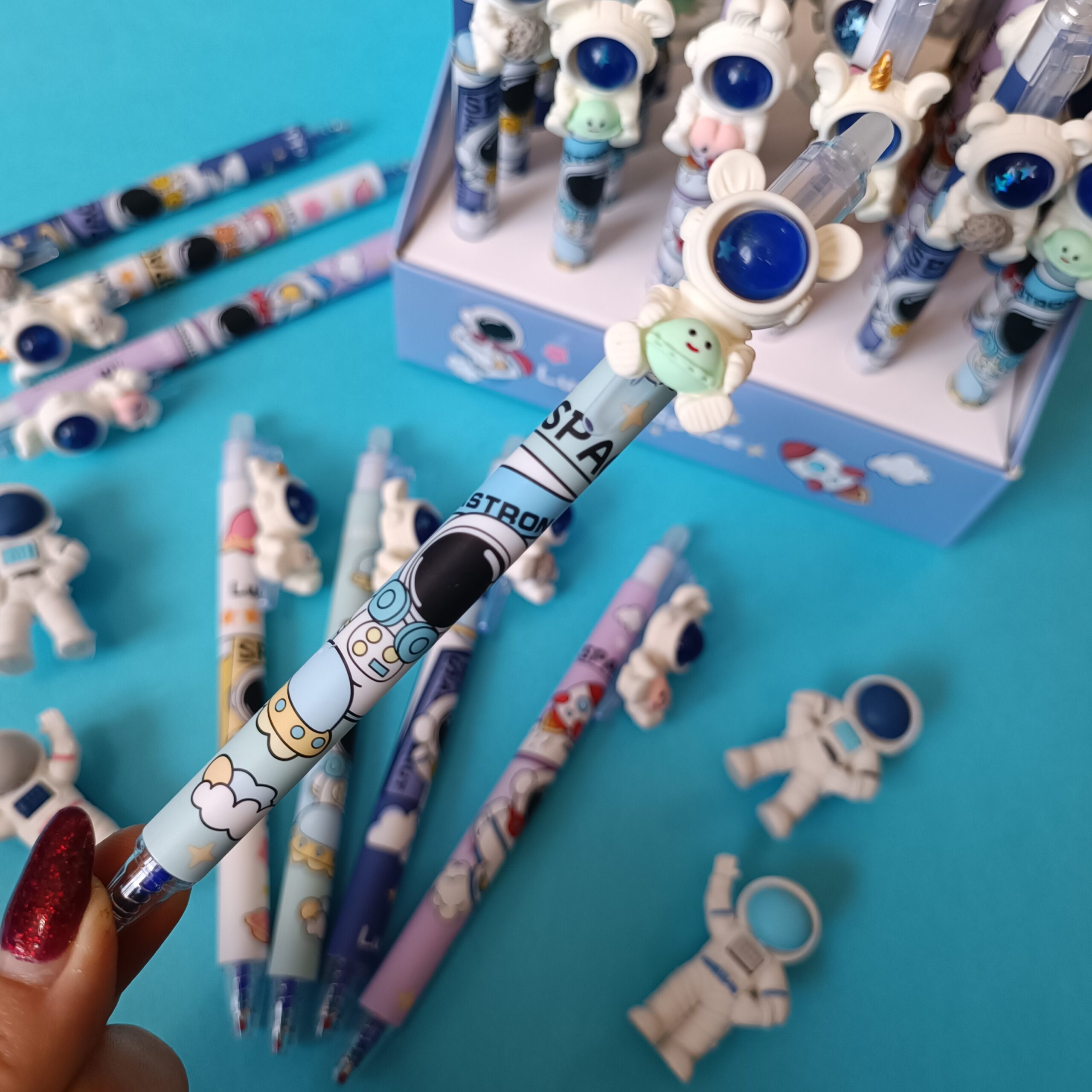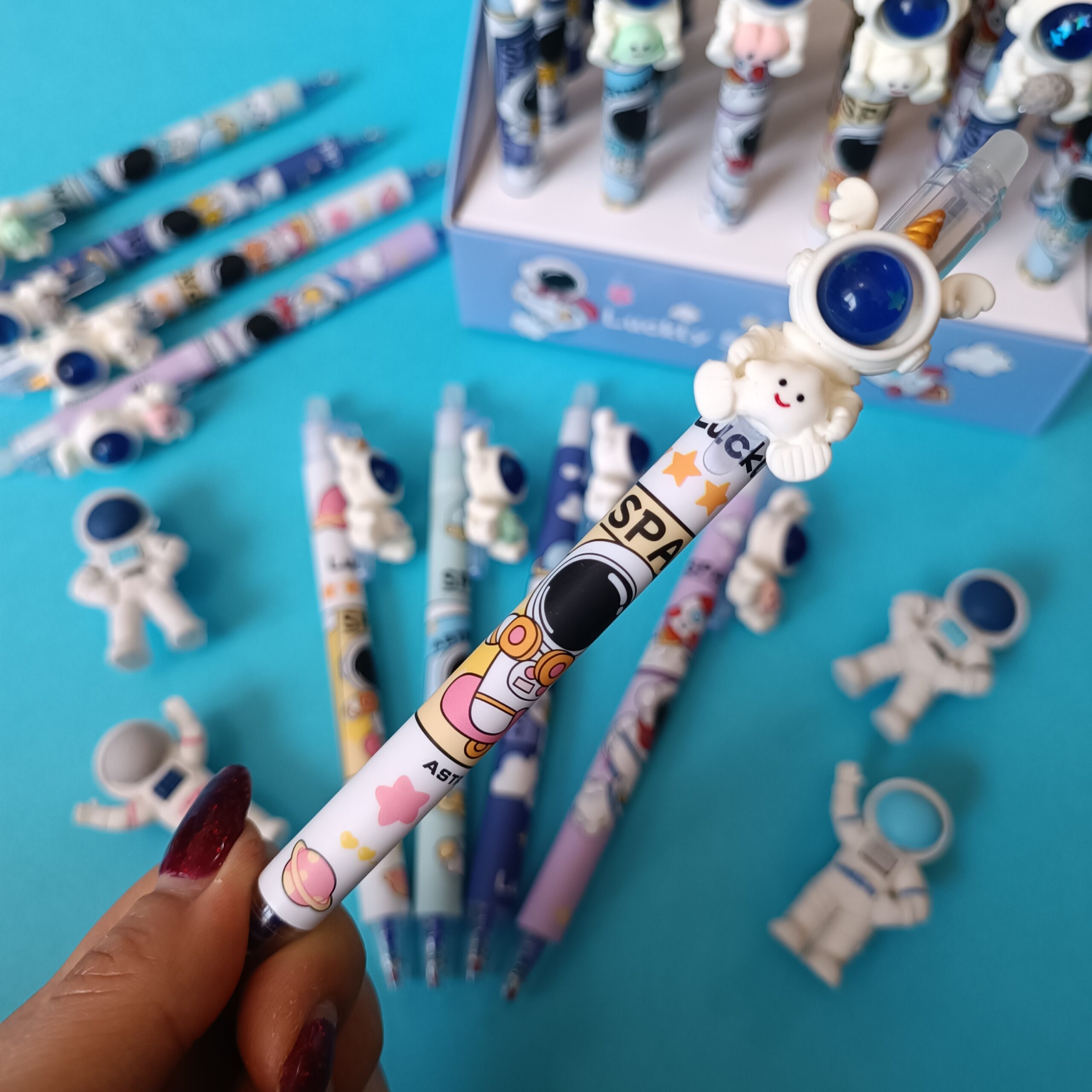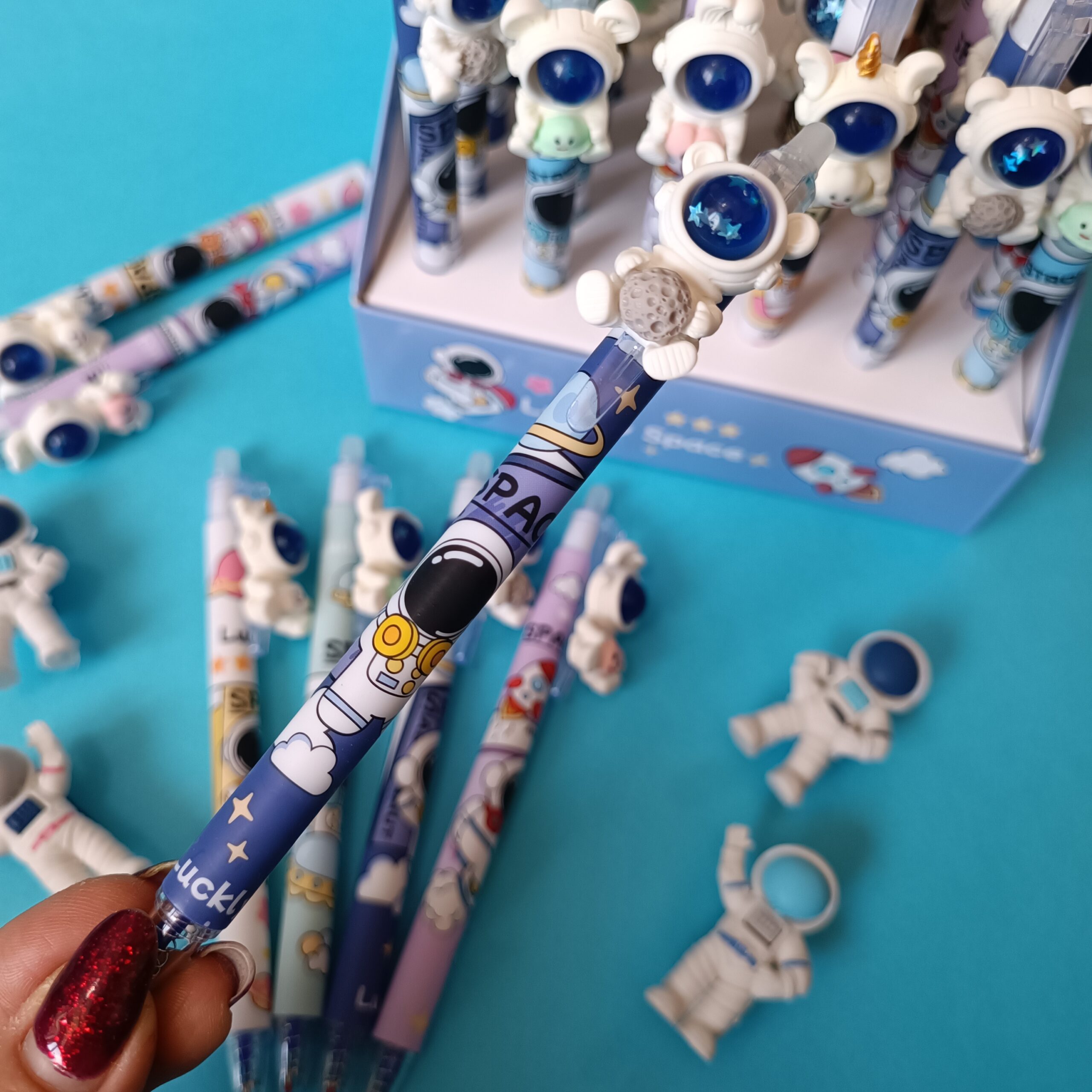 این خودکار، یک انتخاب منحصربهفرد برای کسانی است که هم به نوشتن و هم به طراحیهای خلاقانه علاقه دارند. بدنه این خودکار، الهام گرفته از فضا و دنیای بیانتها، با رنگها و جزئیات گرافیکی جذاب تزئین شده است. هر خودکار دارای آویز فضانورد سهبعدی روی گیره است که به مدلهای مختلف مانند فضانورد همراه با سیاره، ماه یا شخصیتهای بامزه فضایی عرضه میشود.