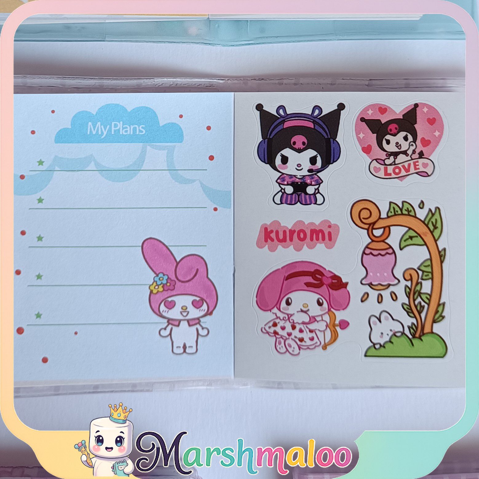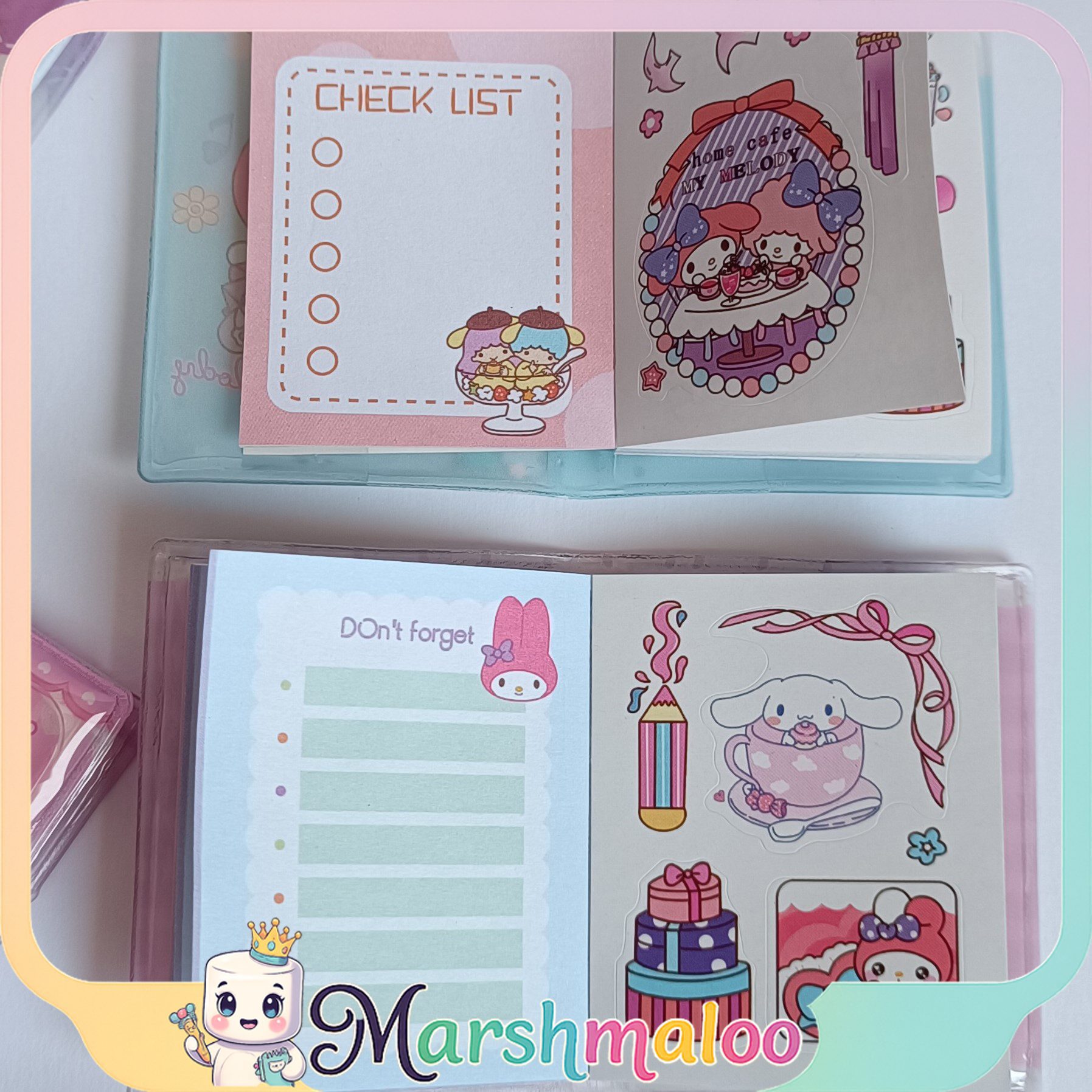 درون هر دفترچه، مجموعهای از برگههای یادداشت برای نوشتن نکات مهم، لیست کارها یا پیامهای کوتاه قرار دارد. همچنین چندین صفحه استیکر فانتزی با طرحهای مرتبط، به شما این امکان را میدهد که دفترچه، نامهها، یا حتی گوشی و لپتاپ خود را تزیین کنید.