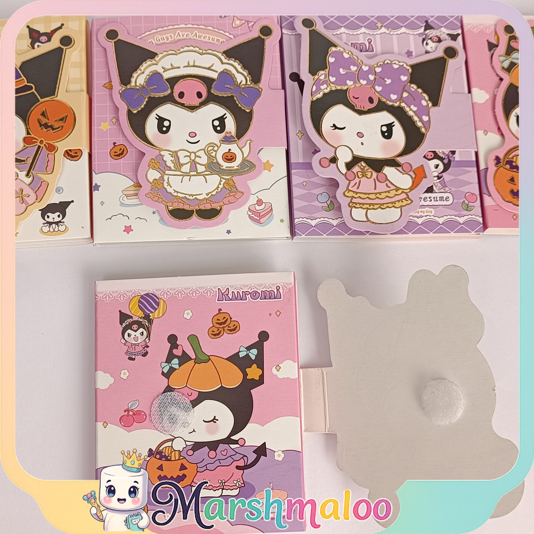 دفترچه استیک نوت کرومی یک محصول فانتزی و کاربردی برای یادداشتبرداری، برنامهریزی و تزئین میز کار یا دفتر تحریر شماست. این دفترچه با طراحی منحصربهفرد و جلد فانتزی که به شکل شخصیت محبوب Kuromi طراحی شده، جلوهای بامزه و خاص به مجموعه لوازم شما اضافه میکند. جلد آن با سیستم بستهشوندهی چسبولکرو (Velcro) محافظت میشود و مانع پخششدن برگهها داخل کیف یا جامدادی میگردد.