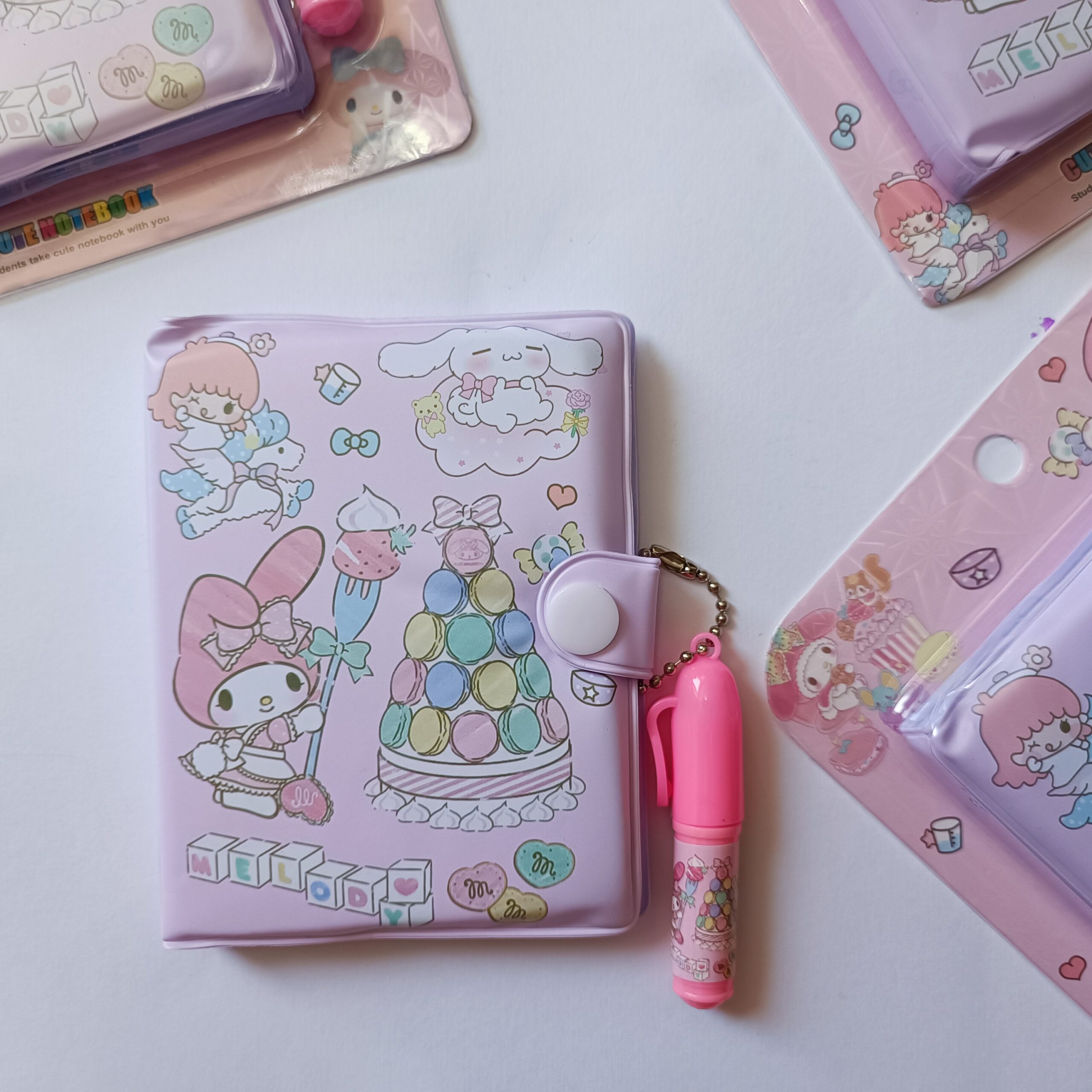 دفترچه خودکاردار کرومی و دوستان با جلد نرم، خودکار متصل، صفحات خطدار و طراحی فانتزی. مناسب یادداشت، خاطرات و هدیه طرفداران سانریو.