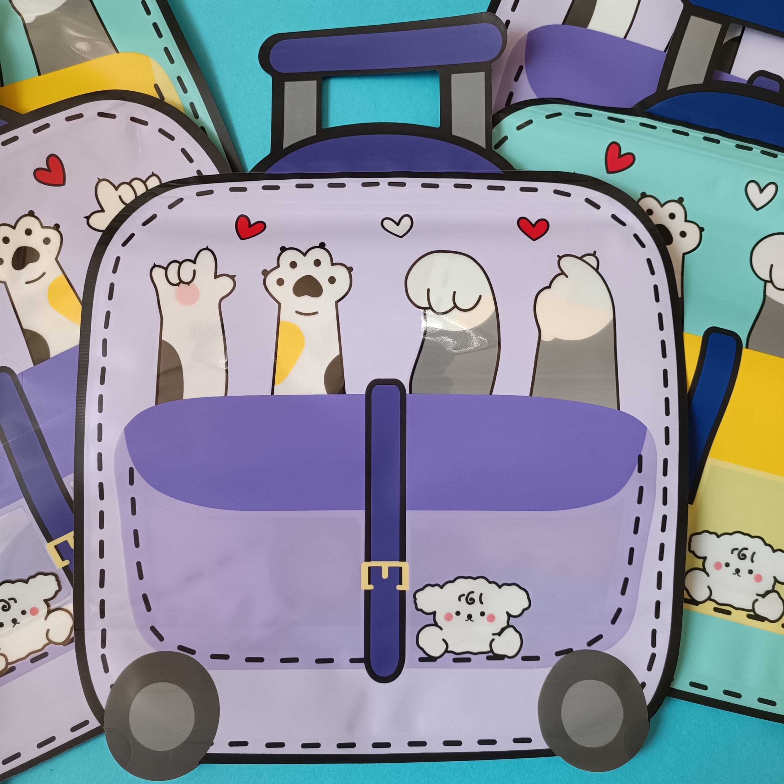 - 🎒 طراحی به شکل چمدان با دسته قابللمس و شخصیتهای حیوانی بانمک