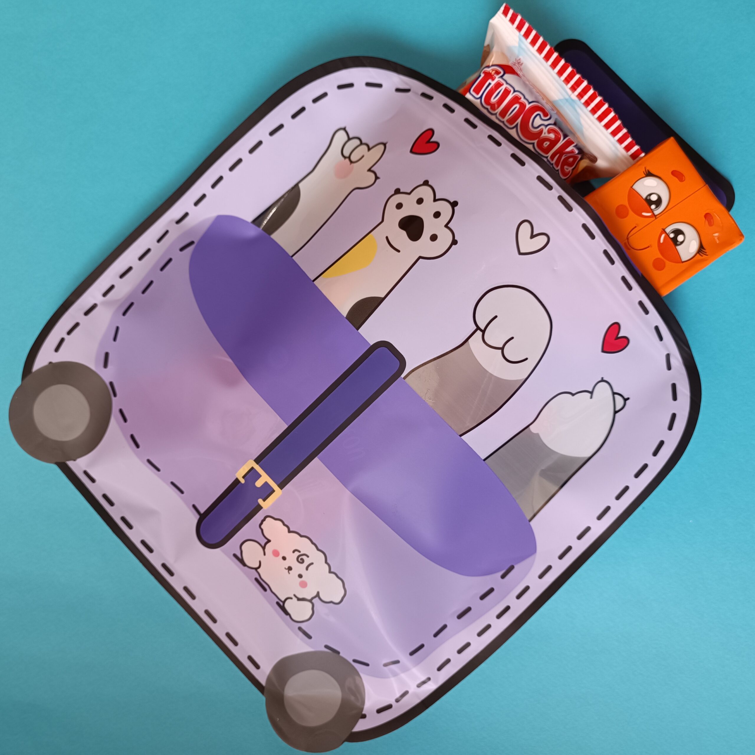 رنگبندی جذاب محصول شامل مدل بنفش با جیب شفاف و مدل آبی-زرد بوده که برای هر سلیقهای مناسب است. جیب شفاف جلو، امکان نمایش محتویات را فراهم کرده و جذابیت هدیه یا محصول را چند برابر میکند. استفاده از مواد مقاوم و ضدنفوذ سبب میشود خوراکیها تازه بمانند و از ورود هوا، گرد و غبار یا رطوبت جلوگیری شود.