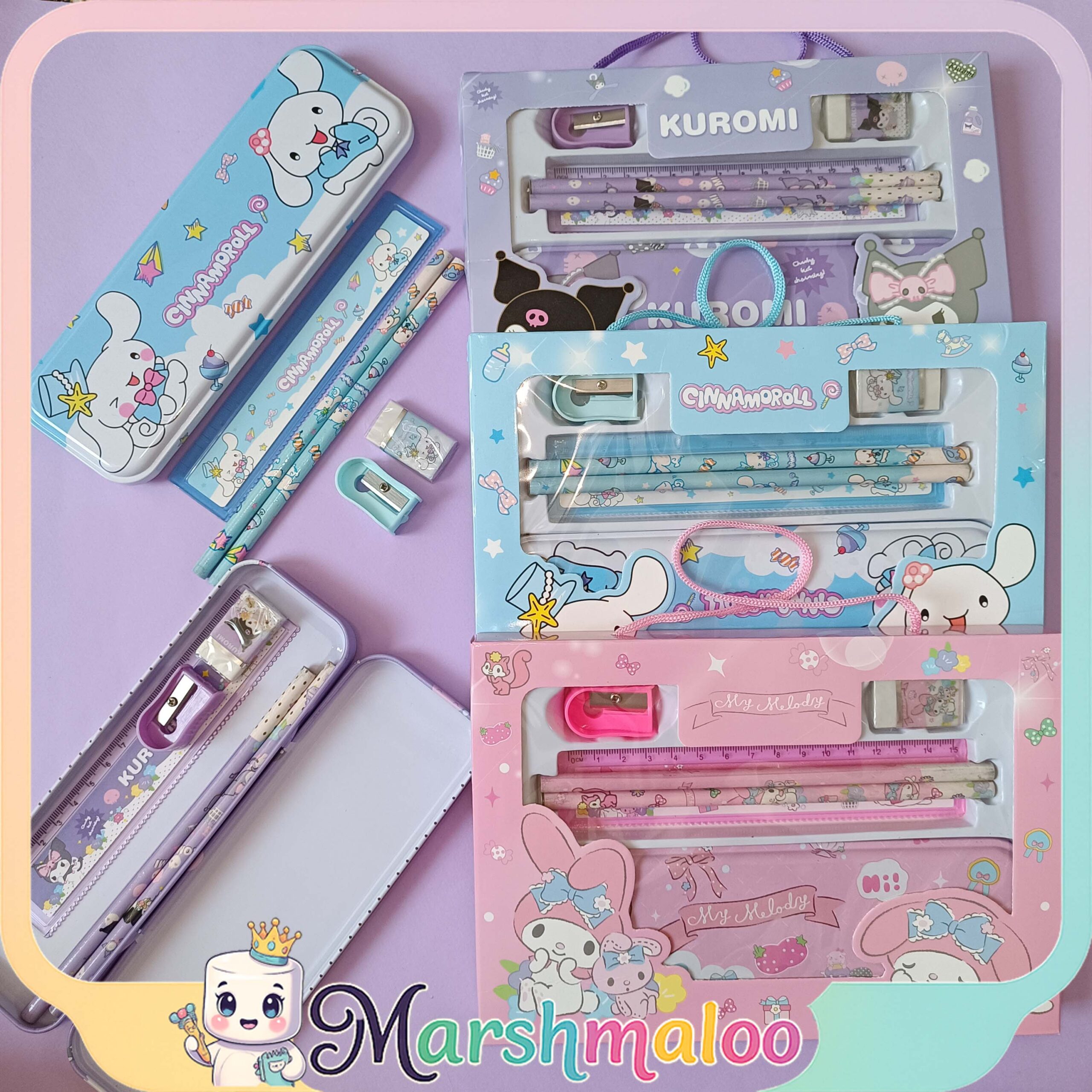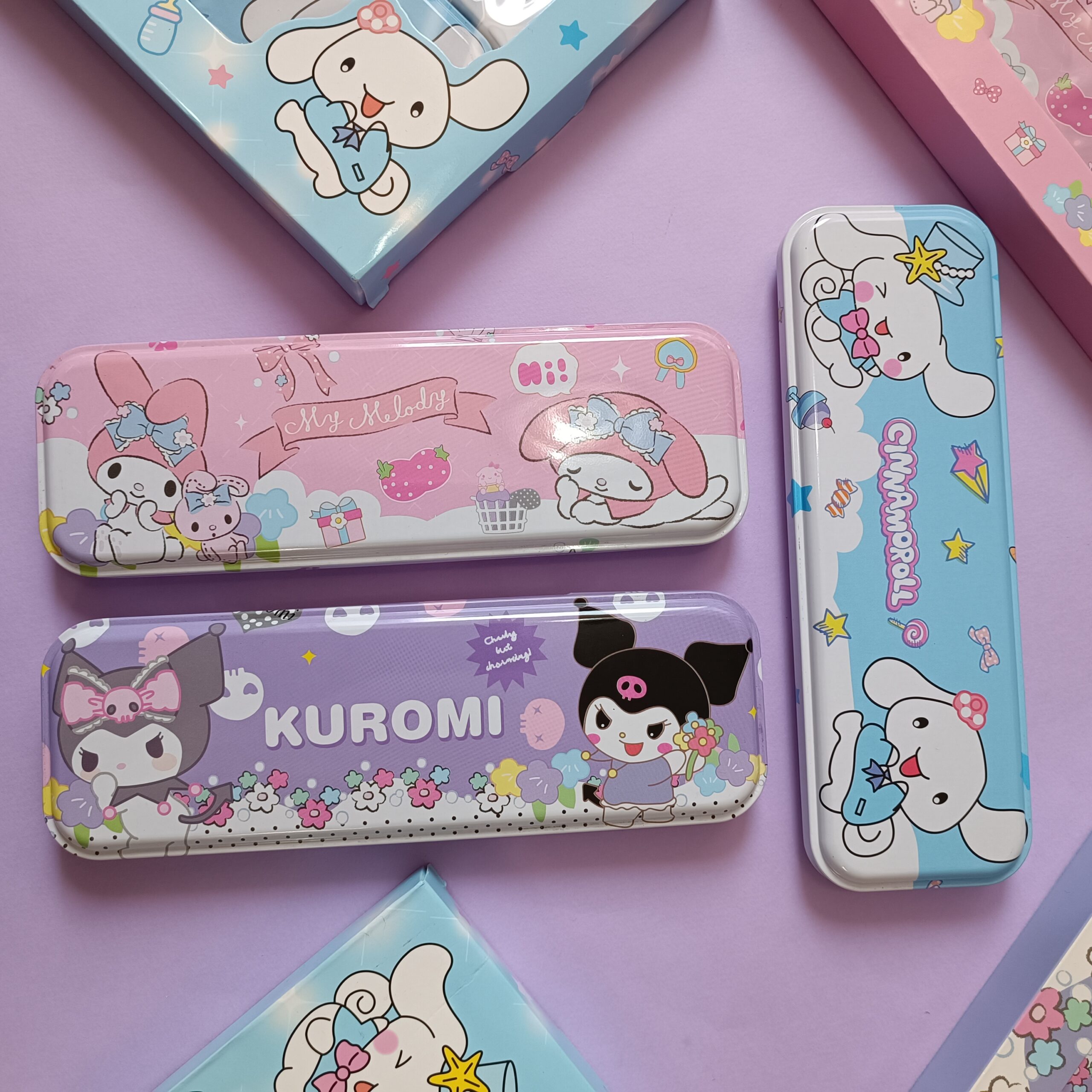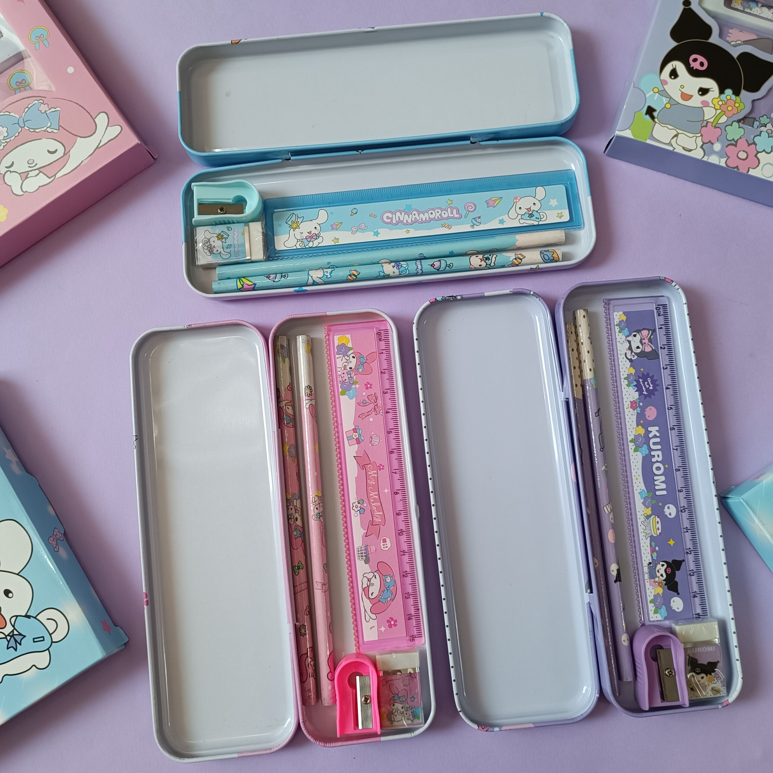 - جامدادی فلزی مقاوم و سبک با طرح شخصیتهای Kuromi، My Melody و Cinnamoroll