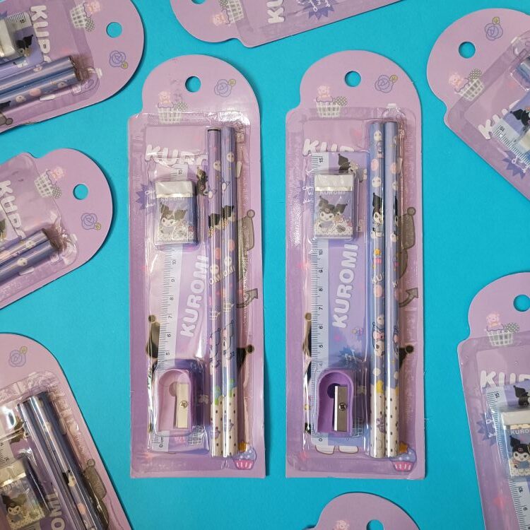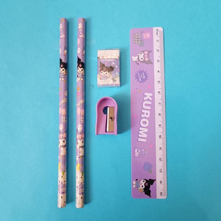 ست تحریر 5 تکه کرومی شامل 2 عدد مداد کرومی، 1 عدد پاک کن کرومی، یک عدد تراش کرومی و 1 عدد خط کش طلقی کرومی