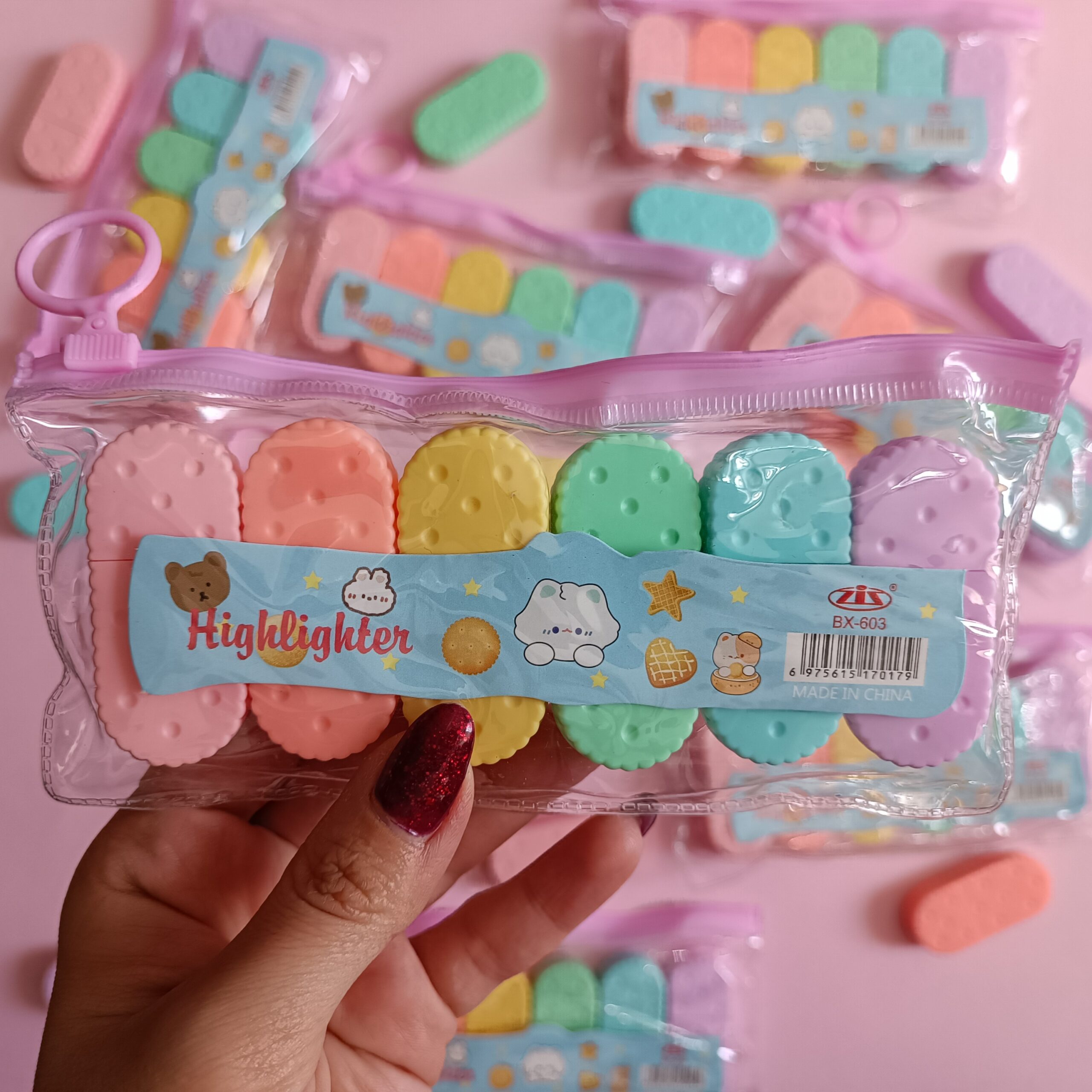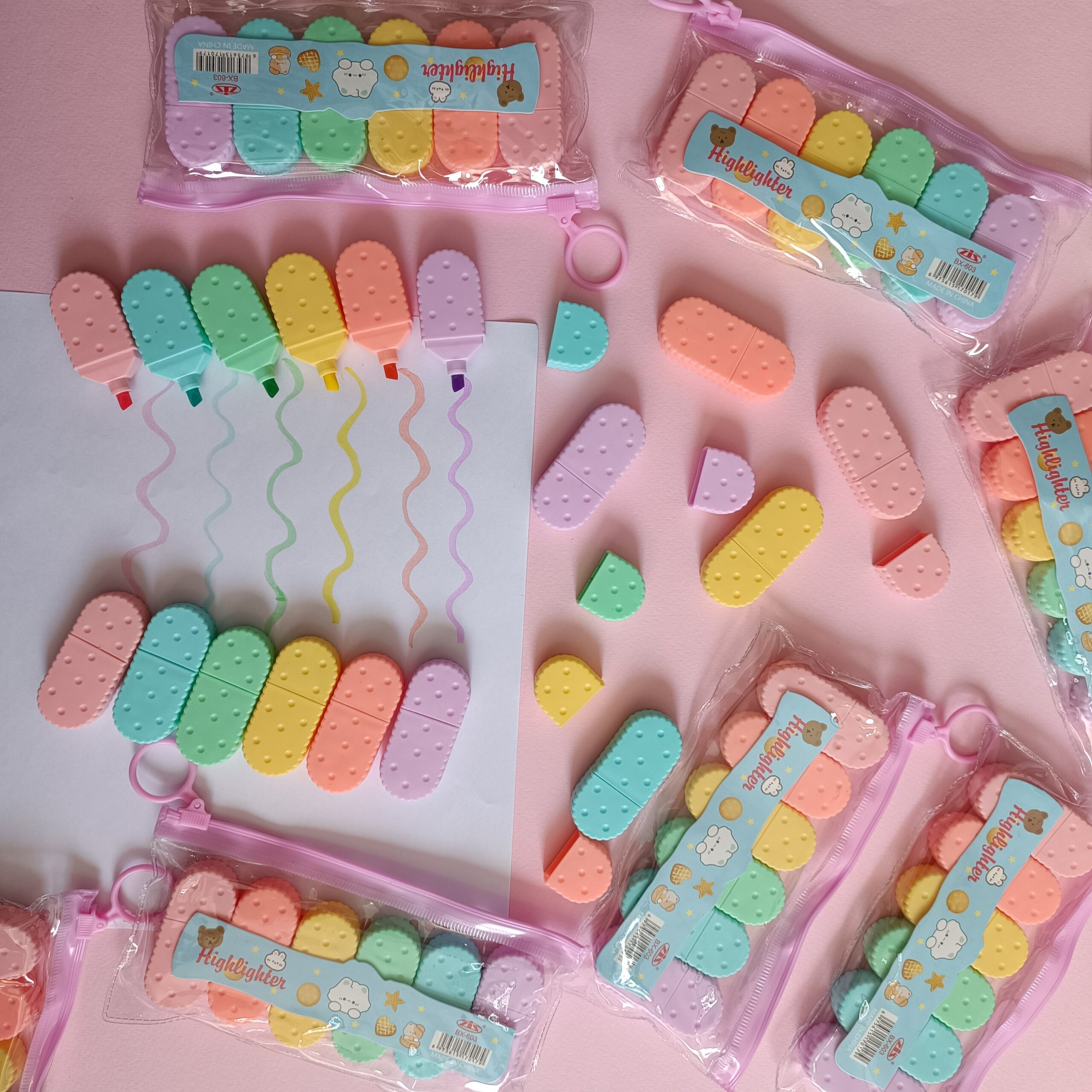 طراحی منحصر به فرد این هایلایترها شبیه بیسکویت‌های کوچک و خوشمزه است و همین ظاهر دل‌بر، آن‌ها را به هدیه‌ای عالی برای دوستان، دانش‌آموزان یا دانش آموزان تبدیل می‌کند. بدنه به گونه‌ای طراحی شده که به راحتی در دست قرار می‌گیرد و استفاده طولانی‌مدت از آن باعث خستگی نمی‌شود. نوک باکیفیت و پهن، امکان خط کشی یکدست و روان را فراهم کرده و برای استفاده در انواع کاغذ مناسب است.