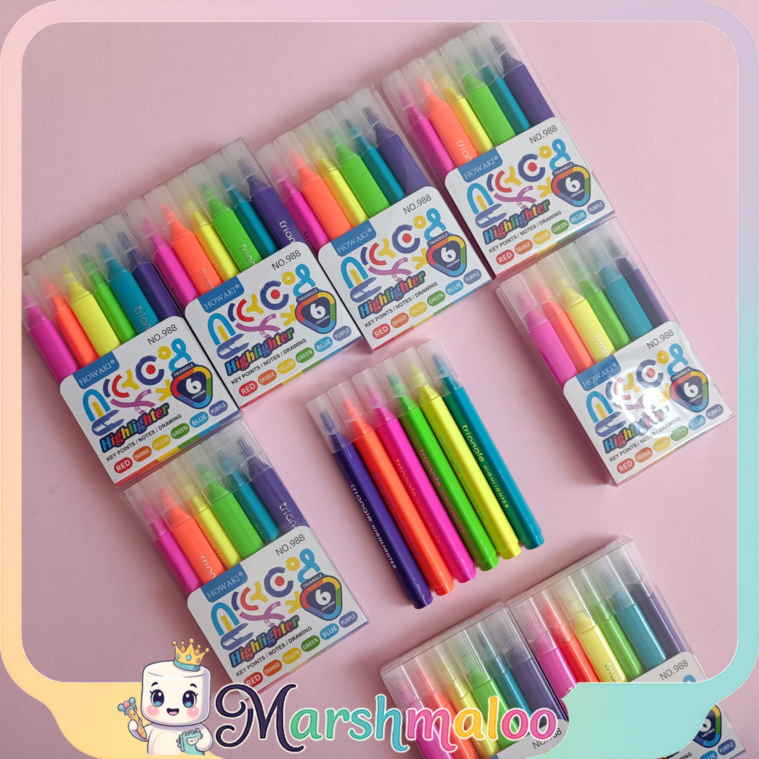 ست هایلایتر 6 رنگ فسفری با بدنه مثلثی ارگونومیک، جوهر درخشان و ماندگار، مناسب یادداشتبرداری، مطالعه و طراحی