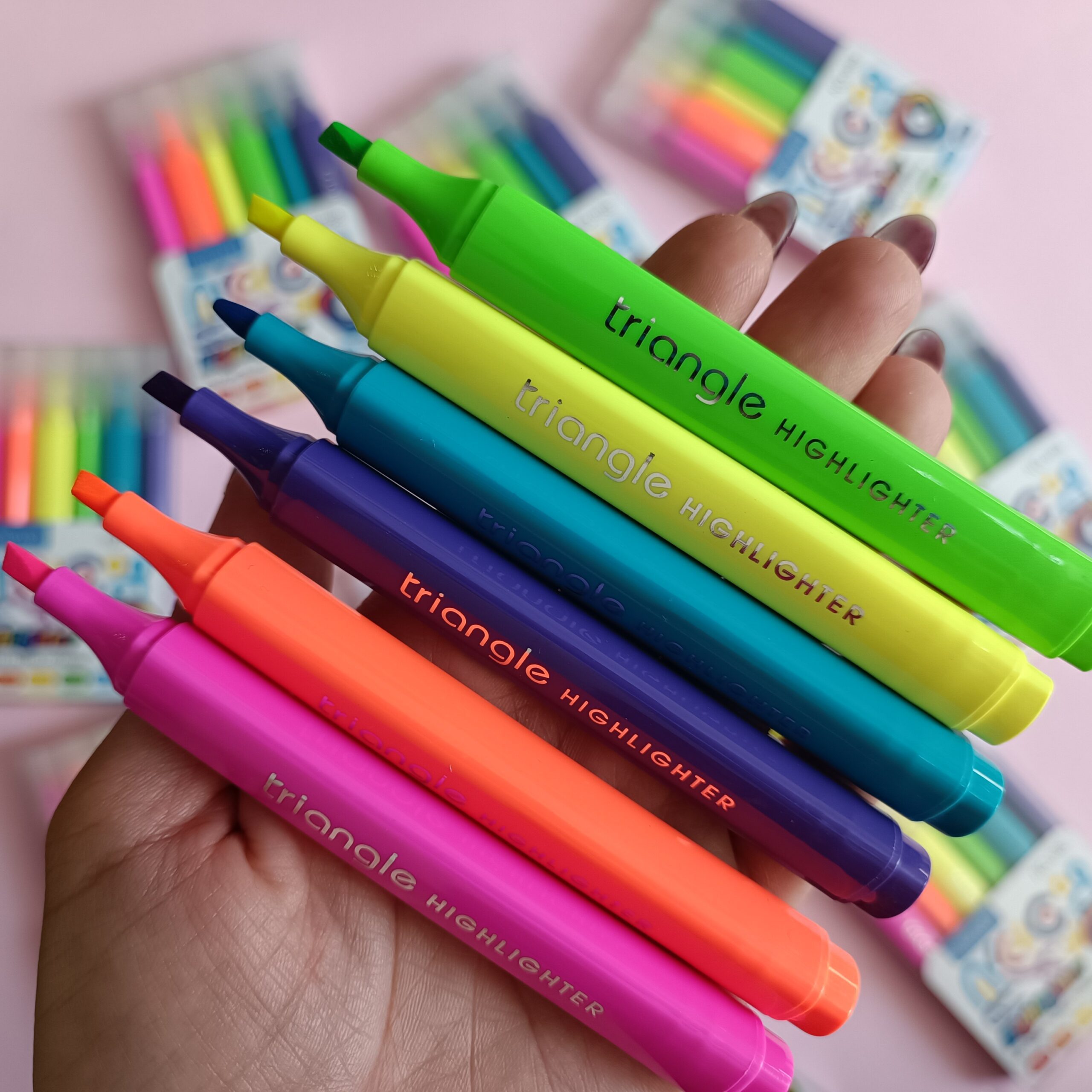 بدنهی مثلثی (Triangle) هایلایترها، علاوه بر جلوگیری از غلتیدن روی میز، ارگونومیک بوده و باعث میشود در دست گرفتن آنها راحت و بدون خستگی باشد. این ویژگی برای جلسات طولانی درس خواندن یا کار کردن بسیار کاربردی است. جوهر زنده و با ماندگاری بالا، باعث میشود متنها حتی پس از مدت طولانی همچنان برجسته و خوانا باقی بمانند.