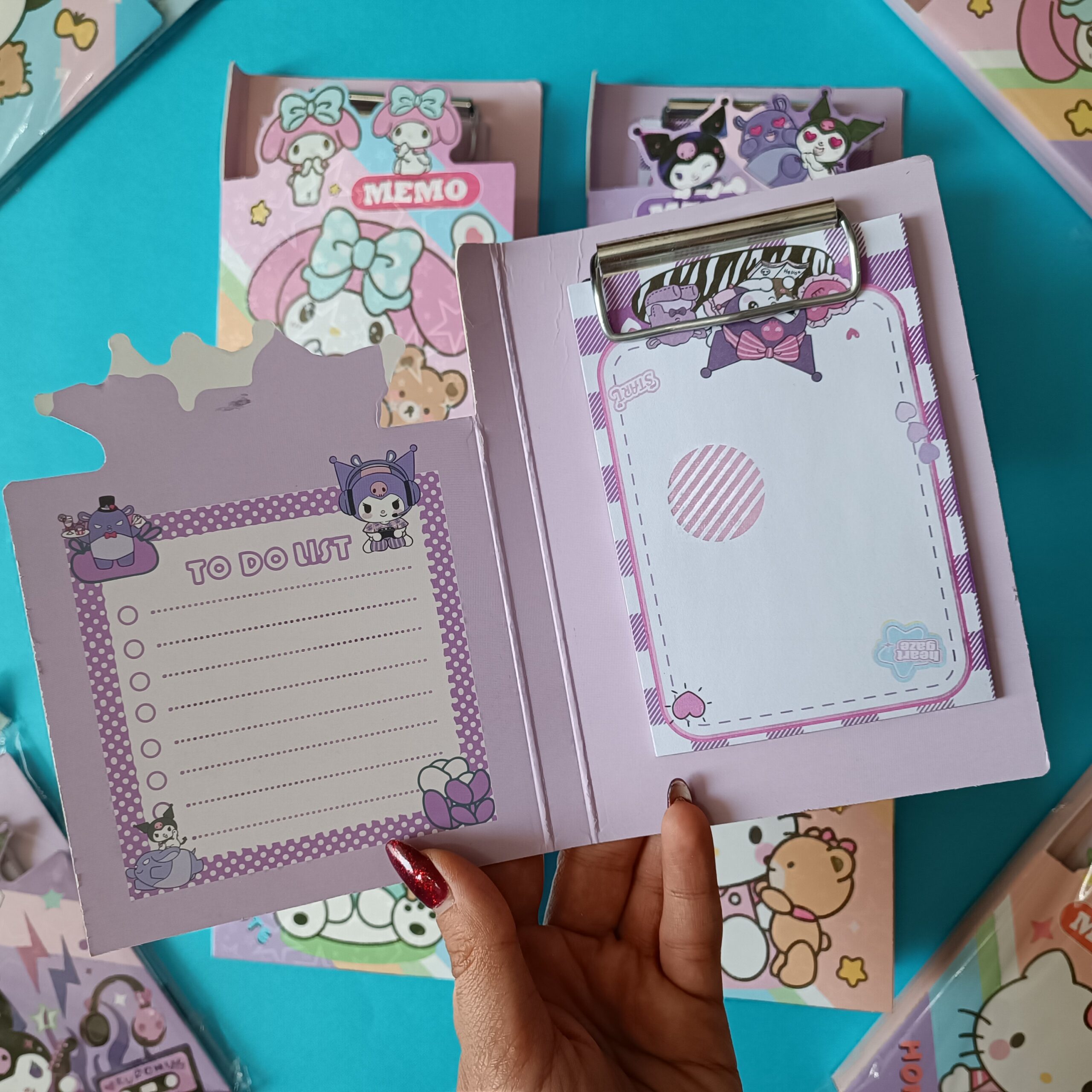 نت تخته شاسی کرومی و دوستان سایز بزرگ، ترکیبی از زیبایی فانتزی و کارکرد حرفهای برای برنامهریزی و یادداشتبرداری روزانه است. این محصول با ابعاد ۱۱×۱۵.۵ سانتیمتر و کاغذهای فانتزی در سایز ۸.۵×۱۲ سانتیمتر، شامل ۳۰ برگ با طراحیهای زیبا از شخصیتهای محبوب سناریو همچون Kuromi، Hello Kitty و My Melody است.