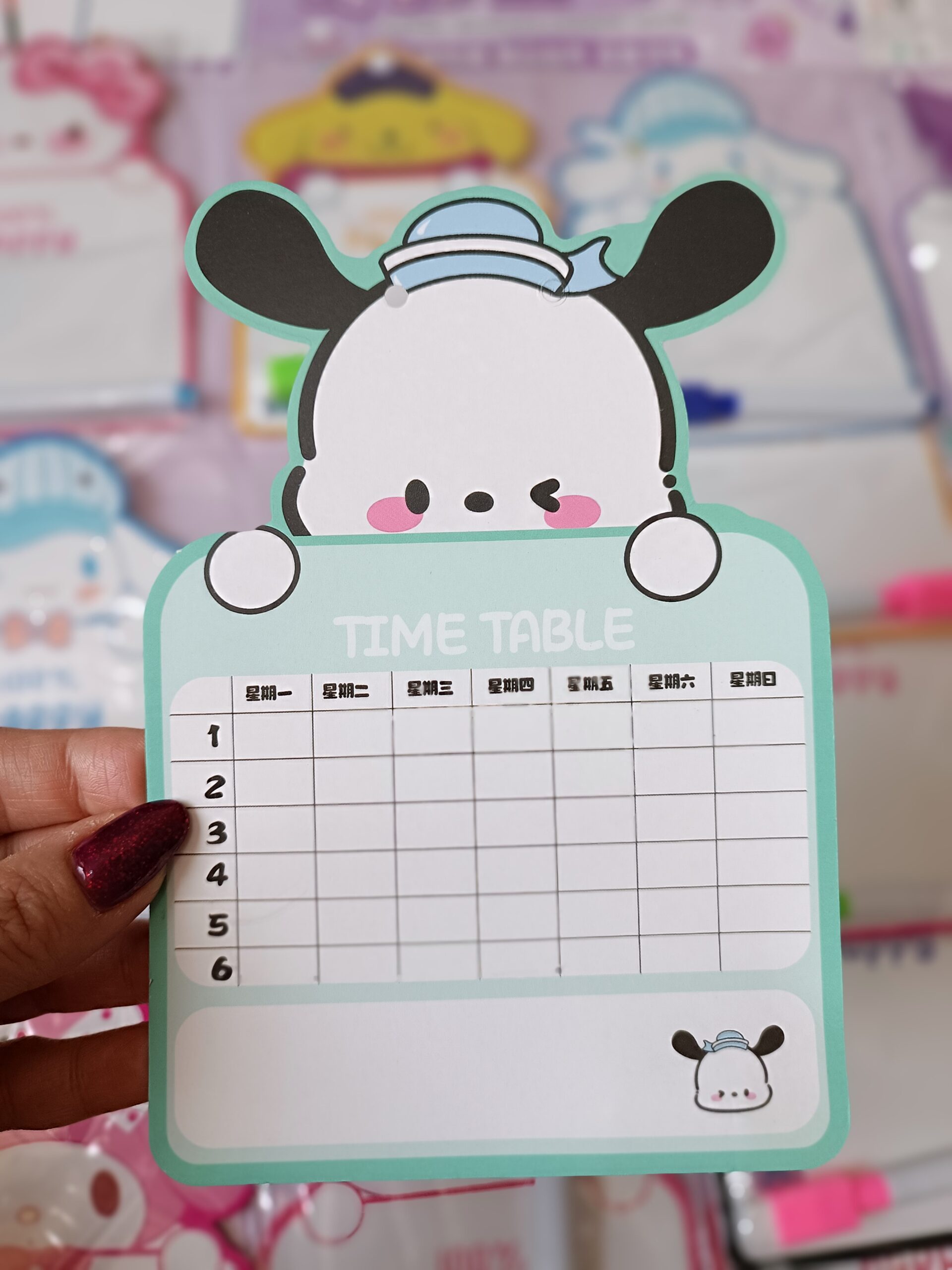وایت برد کارتی کرومی و دوستان با یک سمت ساده و یک سمت جدول برنامهریزی، ابعاد تقریبی 12.5×17.5 سانتیمتر، مجهز به ماژیک وایت بورد. مناسب برای برنامهریزی روزانه و یادداشتهای سریع.