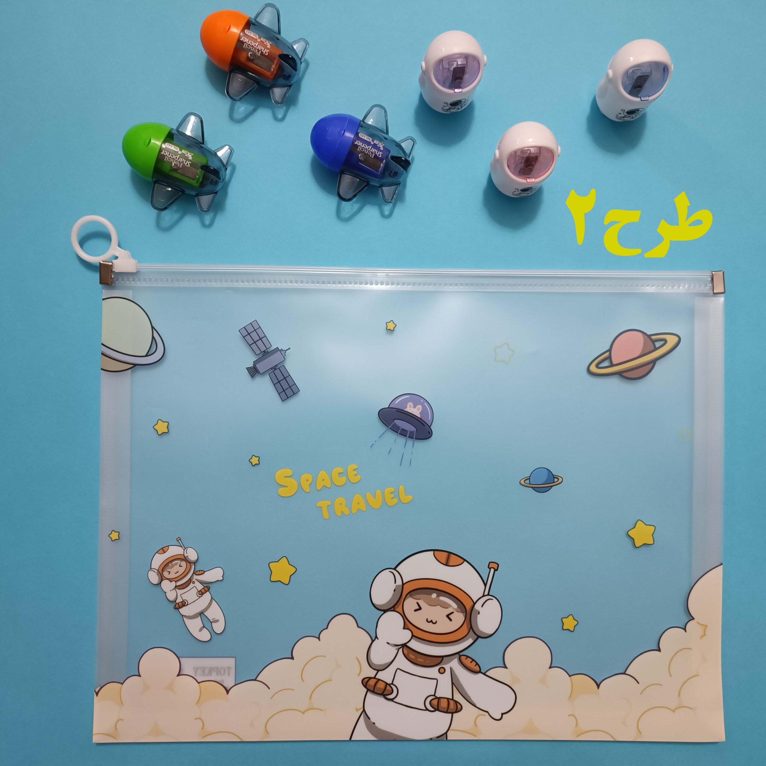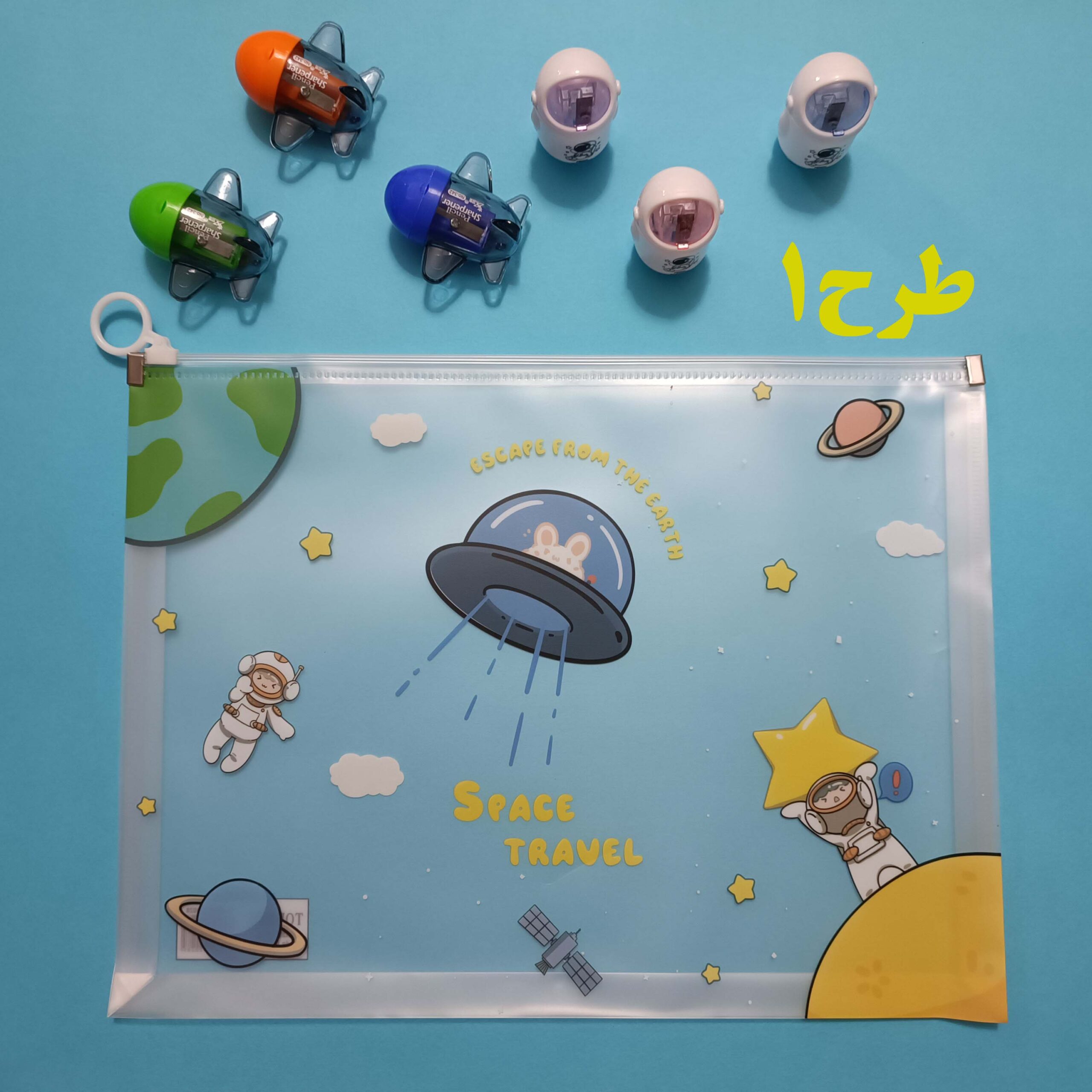 پوشه فضانورد Space Travel (مسافرت فضایی) A4 در ۴ طرح فانتزی و رنگارنگ، مناسب نگهداری مدارک و جزوهها با چاپ باکیفیت و زیپ روان.