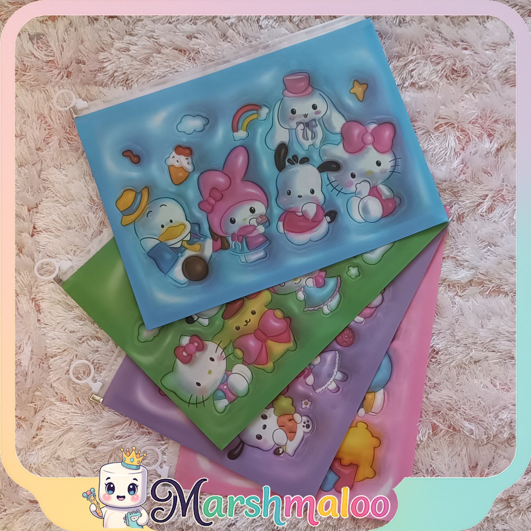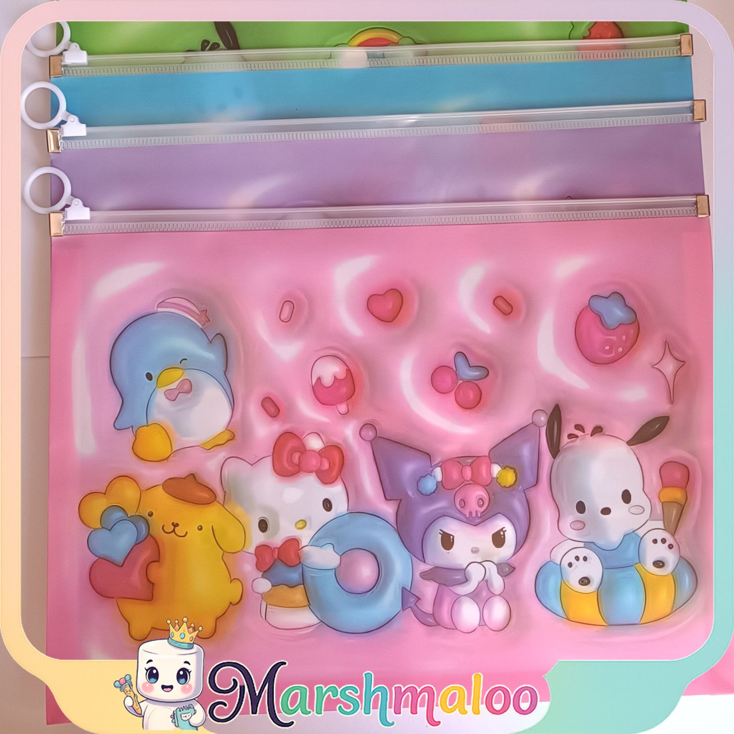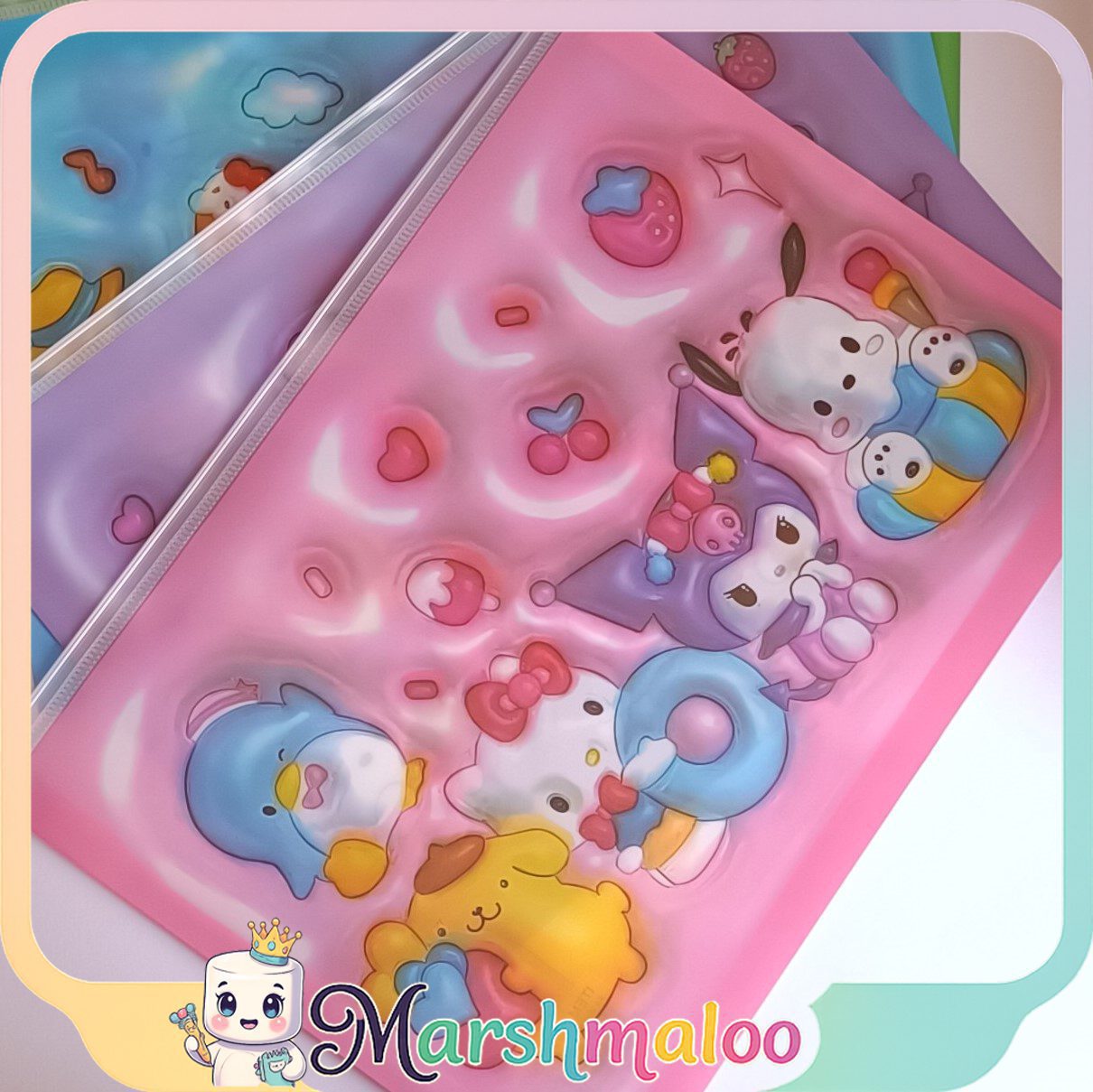 پوشه کرومی و دوستان A4، یک انتخاب عالی برای کسانی است که به دنبال ترکیب زیبایی و کارایی در لوازمالتحریر خود هستند. این مجموعه با تصاویر جذاب شخصیتهای دوستداشتنی Kuromi، My Melody، Hello Kitty، Pompompurin، Pochacco و دیگر دوستان محبوبشان، هر بار استفاده را به یک تجربه دلنشین تبدیل میکند.