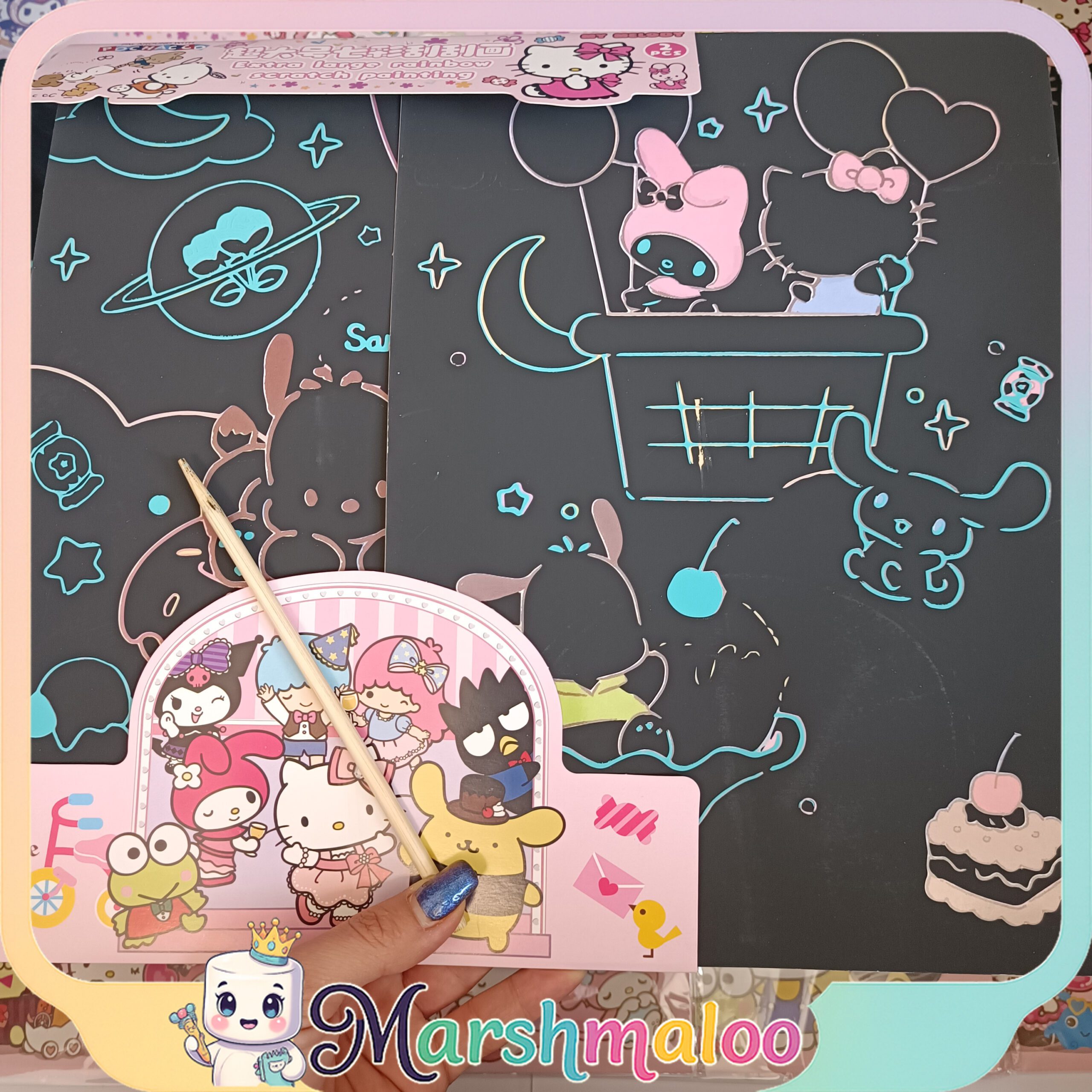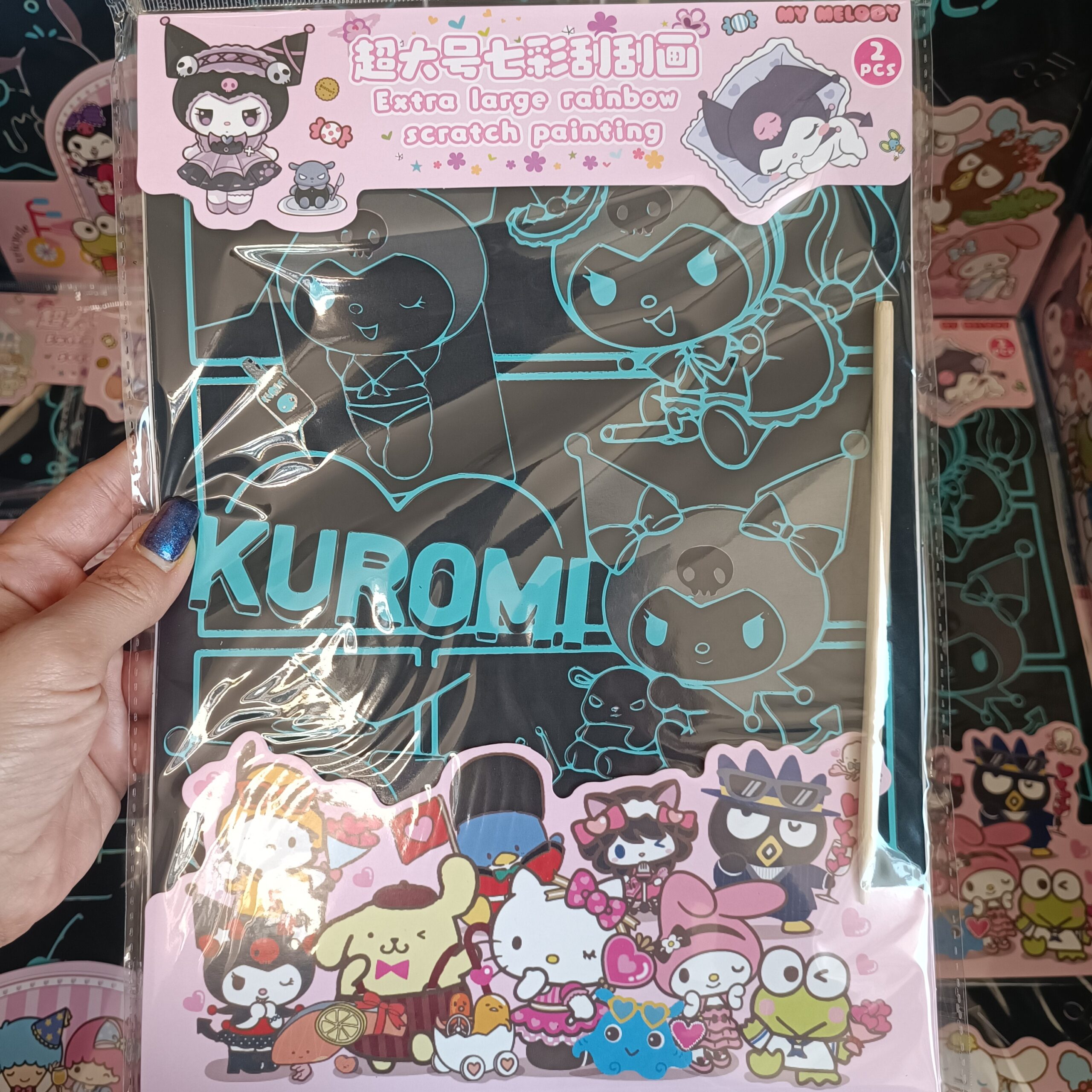 پک ۲ عددی بزرگ نقاشی ذغالی کرومی یک انتخاب خاص برای علاقهمندان به هنر و شخصیتهای فانتزی سنریو است. این محصول با طراحی اسکراچ (خراشیدنی)، تجربهای متفاوت و سرگرمکننده ارائه میدهد. صفحات سیاه با طرحهای جذاب شخصیتهای محبوب مانند Kuromi، My Melody، Hello Kitty، Pompompurin و دیگر دوستانشان، منتظرند تا با قلم چوبی مخصوص، بخش به بخش خراشیده شوند و لایه رنگینکمانی زیرین خود را آشکار کنند.